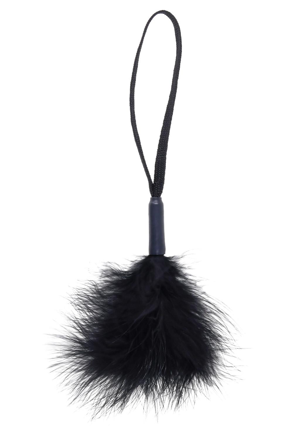 The Black Peaches ’n CreaMe Wrist Feather Tickler, crafted with black feathers that glide softly while delivering an elegant, teasing touch. The sleek black wrist loop ensures comfort and control as you stroke, swirl, and tempt, building arousal with each dark, delicate sweep. Bold, mysterious, and easy to clean, it’s perfect for adding a seductive edge to your sensory play and pairing with your favorite black accessories.Soft, feathers that tickle-to-the-touchComfortable wrist loop for easy play and storageLightweight design for effortless control and precise sensationMaterials: 35% PVC, 35% Polyester, 30% Turkey Feather
