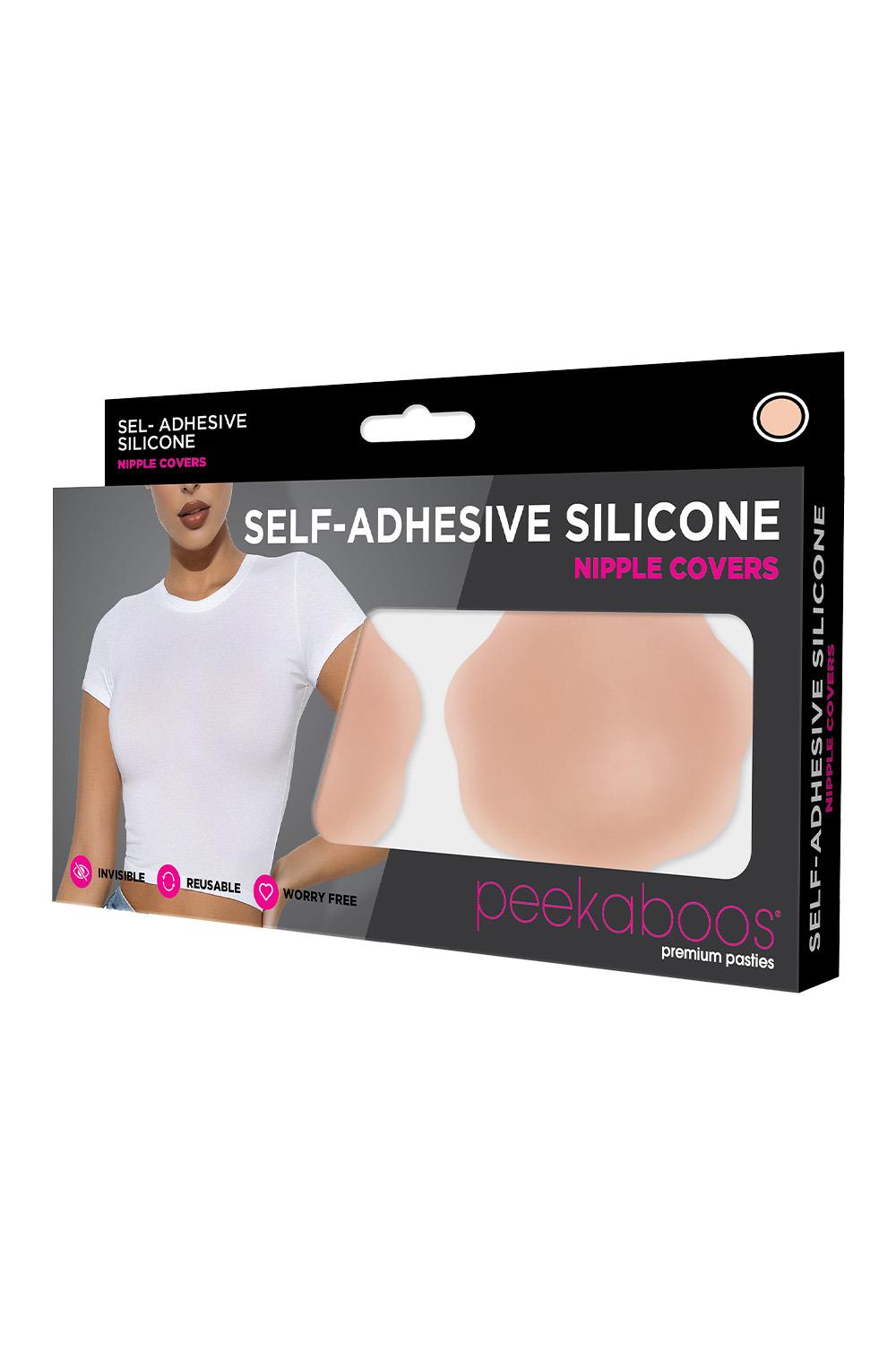 Stay smooth, confident, and worry-free with Peekaboos Premium Pasties. The Self-Adhesive Silicone Nipple Covers are designed for invisible coverage under any outfit, giving you a seamless look without the need for a bra. Made from soft, skin-friendly silicone, these covers provide a natural appearance and comfortable wear all day long. Perfect for backless dresses, sheer tops, or anytime you want discreet coverage with total confidence.nvisible Finish: Blends flawlessly under clothing, even with thin or form-fitting fabrics.Reusable Design: Simply wash with mild soap and water to enjoy multiple uses.Worry-Free Fit: Strong yet gentle adhesive keeps them securely in place.Premium Quality: Lightweight silicone for a natural feel and smooth coverage. Packaging: Box w/ Hang TabMaterials: SiliconeLength: 2.50 inch / 6,3 cmWidth: 2.50 inch / 6,3 cm