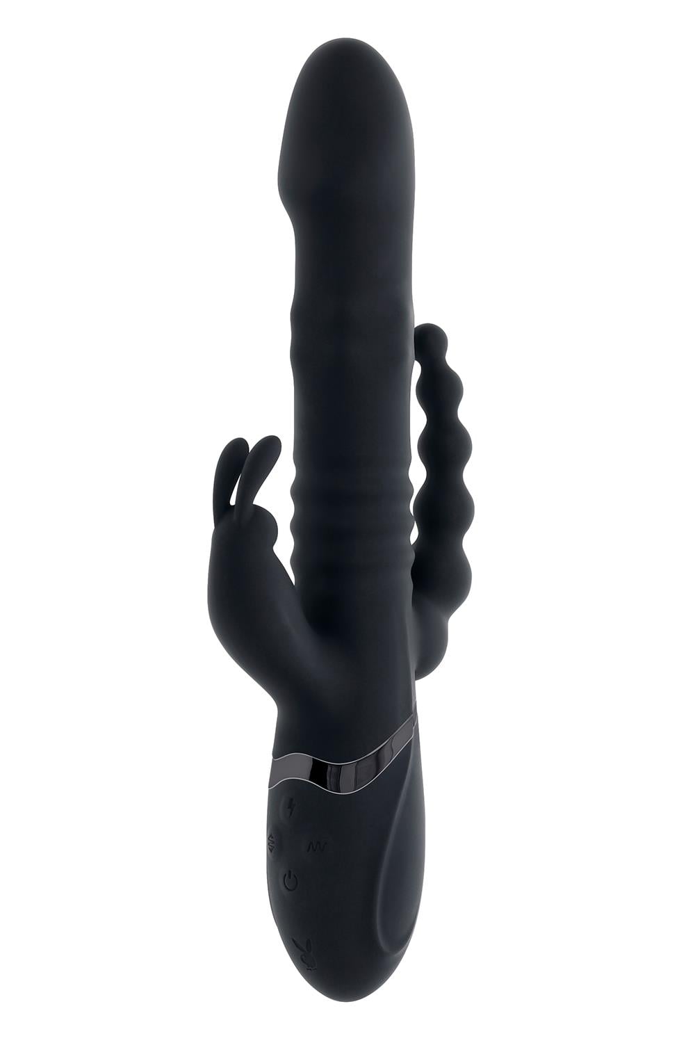 Freedom to Play:Turn it on and feel the Big Bunny Energy for yourself. Stimulating three erogenous zones at once, this energetic triple-shaft Rabbit Vibrator will leave you breathless. Two swirling beaded rings inside the main thrusting shaft provide a thrilling internal massage that begins at the realistically-shaped tip. Explore a tri-gasmic experience with the gently curved Anal Beads, powerful vibrations in the shaft, and external bunny shaped stimulator.Play with me (key feature): Triple stimulation from Anal Beads, thrusting shaft, and external stimulatorVibration: 7 vibrating speeds & rhythms, 3 thrusting and rotating speeds & rhythmsMaterial: Body-safe Silicone, Phthalate & Latex freeWaterproofHeight: 10.3 inch / 26,2 cmDepth: 3.89 inch / 9,9 cmWidth: 1.71 inch / 4,3 cmInsertable length 6.25 inch / 15,9 cmInsertable diameter 1.5 inch / 3,8 cm