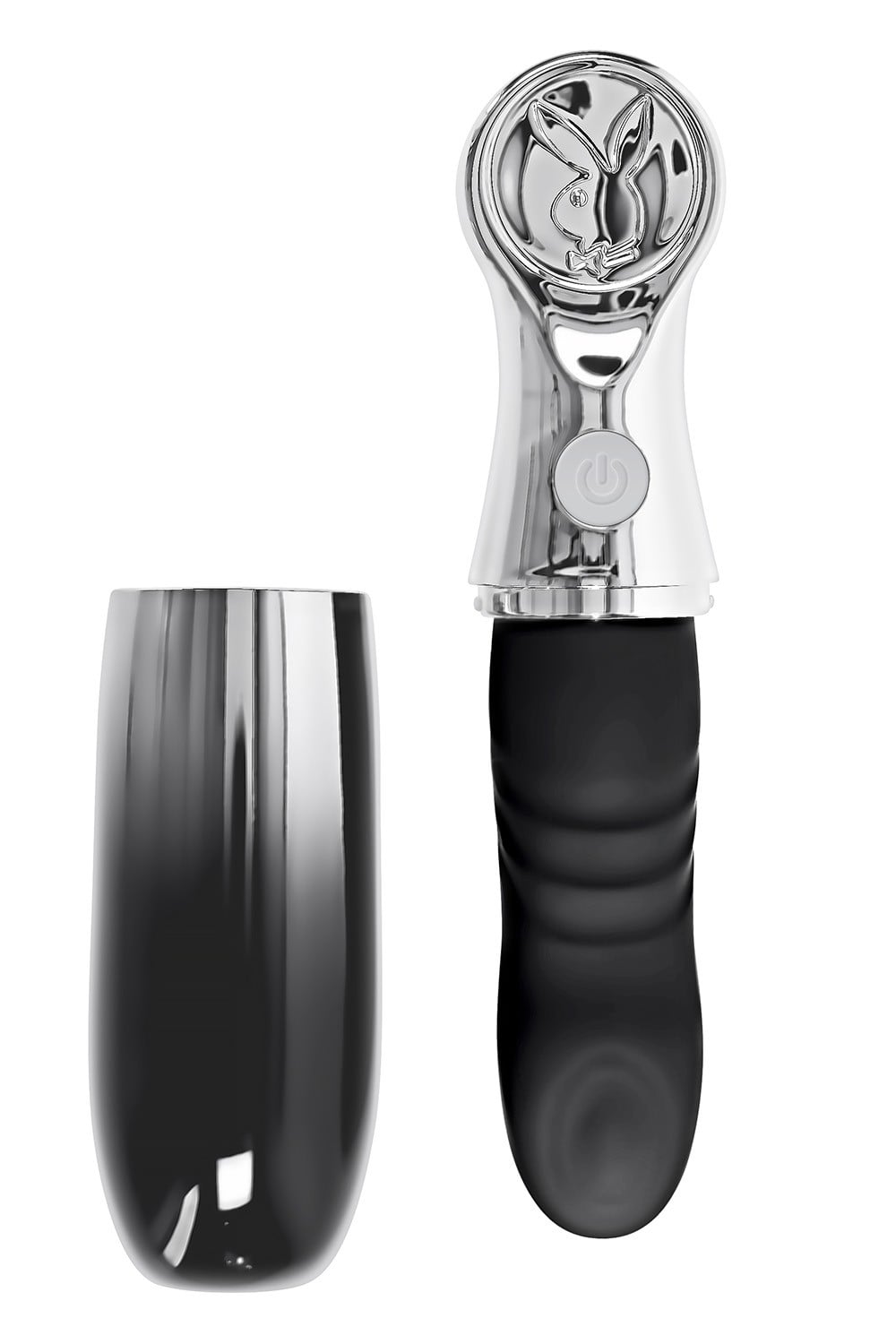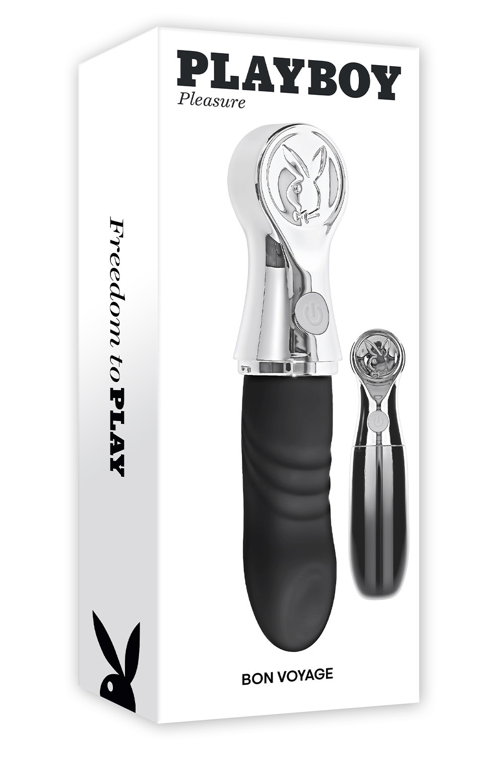 Bon Voyage! We’ve got your travel adventures covered with this powerful tapping toy you can pop into any purse, bag or carry-on luggage for pleasure on the go! The chunky shaft is ribbed for extra sensation and comes to a head with 7 speeds and rhythms of tapping in the beautifully angled tip. With its ombre chrome carrier that twists into place right underneath the ergonomic Playboy rabbit head, your toy is fully protected until you pull it out for play time whenever you like. Heading to the hot tub? Bon Voyage can join your water games as it’s completely submersible!Powerful tapping at head, Rabbit head travel caseTapping: 7 tapping speeds & rhythmsMaterial: Body-safe Phthalate & Latex free SiliconeWaterproof & Submersible IPX-7Rechargeable: USB-C cable includedHeight: 7.37 inch / 18,7 cmDepth: 1.77 inch / 4,5 cmWidth: 1.77 inch / 4,5 cmInsertable Length: 3.75 inch / 9,5 cmDiameter: 1.26 inch / 3,2 cm