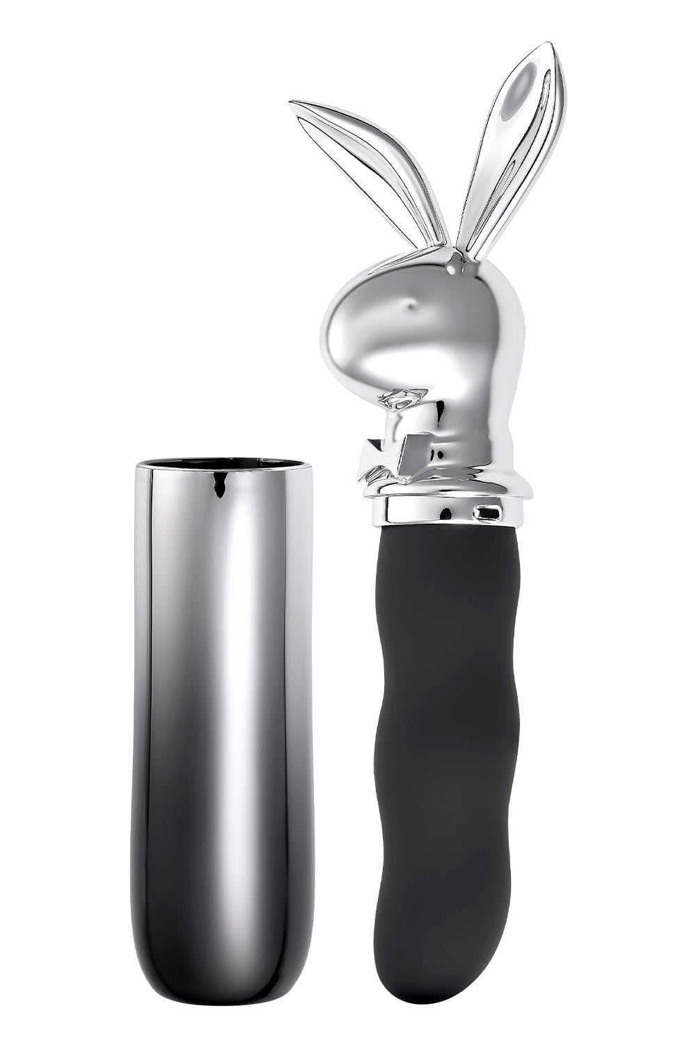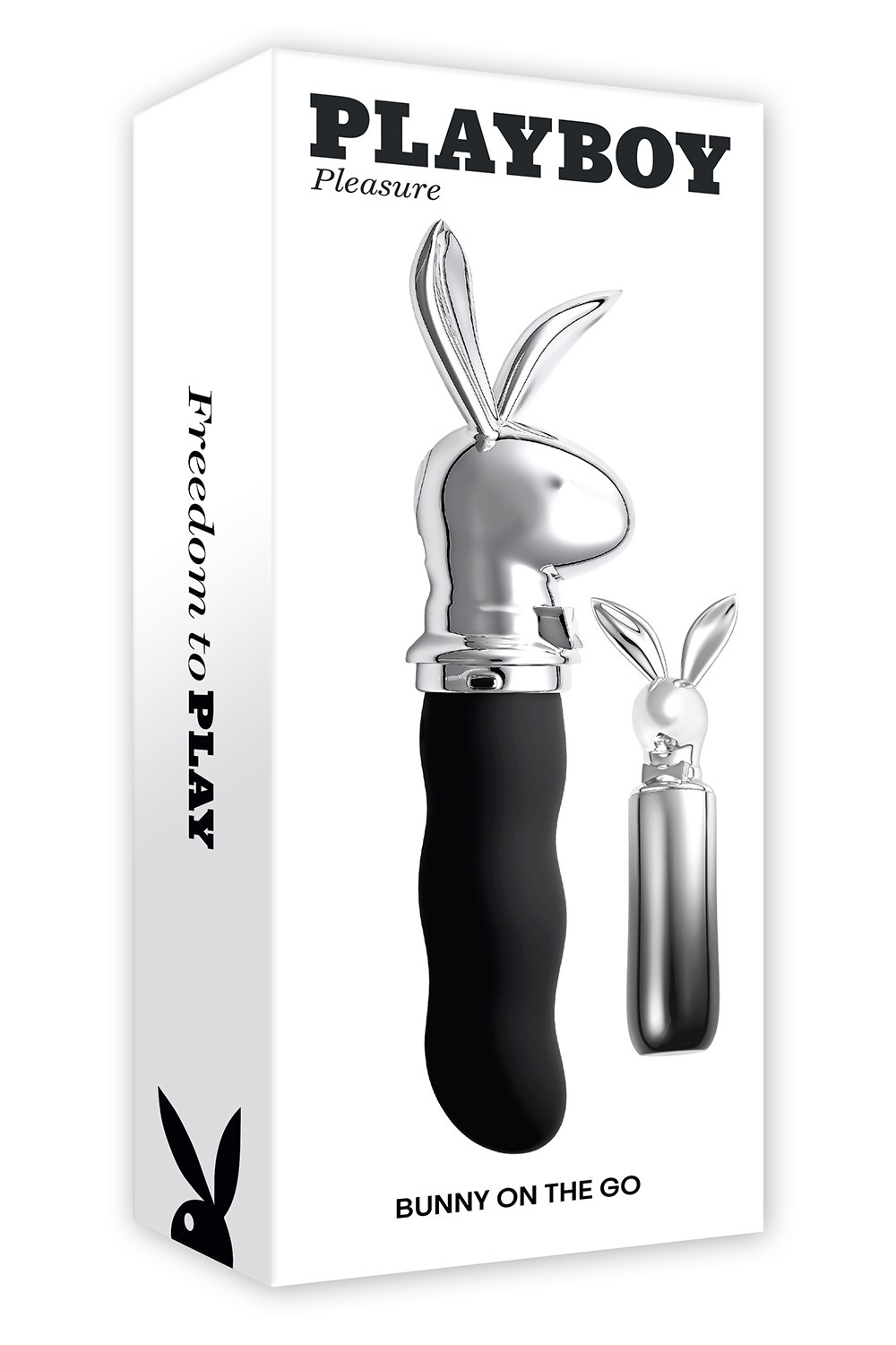 Don’t forget to pack your Bunny on the Go! This deliciously powerful, flexible 10-speed vibrator features a bumpy, girthy shaft that will drive you wild wherever you choose to take it. With its ombre chrome carrier that twists into place right underneath the Playboy rabbit head, your nightstand buddy is fully protected, so you can throw it into any purse, bag or luggage and pull it out for play time whenever you like. Heading to the hot tub? Your Bunny on the Go can join in the fun as it’s completely water submersible!Powerful vibe, Rabbit head travel caseVibration: 10 vibration speeds & rhythmsMaterial: Body-safe Phthalate & Latex free SiliconeWaterproof & Submersible IPX-7Rechargeable: USB-C cable includedHeight: 7.33 inch / 18,6 cmDepth: 1.66 inch / 4,2 cmWidth: 2.25 inch / 5,7 cmInsertable Length: 3.5 inch / 8,9 cmDiameter: 1.04 inch / 2,6 cm