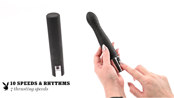Freedom to Play: Welcome to the Pleasure Zone where intense vibrations meet powerful thrusting to deliver a deeply orgasmic experience. Enjoy the tickle of the diamond-pattern textures on the tapered 10-speed head, then engage thrusting for a wild ride that will leave you breathless. Despite its impressive size, this robust toy is also quite stealth, slipping into its stylish protective case and onto the charging base that features a light-up Playboy rabbit head as its indicator light. Play with me (key feature): Vibrating & thrusting shaftVibration: 10 speeds & rhythms, 7 thrusting speedsMaterial: Body-safe silicone & ABSPhthalate & Latex freeWaterproof: YesMagnetic Rechargeable: USB cable includedHeight: 8.41” / 21,4 cmDepth: 1.62″ / 4,1 cmWidth: 1.62″ / 4,1 cmInsertable length: 6.25” / 15,9 cmInsertable diameter 1.43” / 3,6 cmHeight with case: 8.93” / 22,7 cmDepth with case: 1.72” / 4,4 cmWidth with case: 1.72″ / 4,4 cmCharging Port:Height: 3.64” / 9,2 cmDepth: 1.64” / 4,2 cmWidth: 3.52” / 8,9 cm