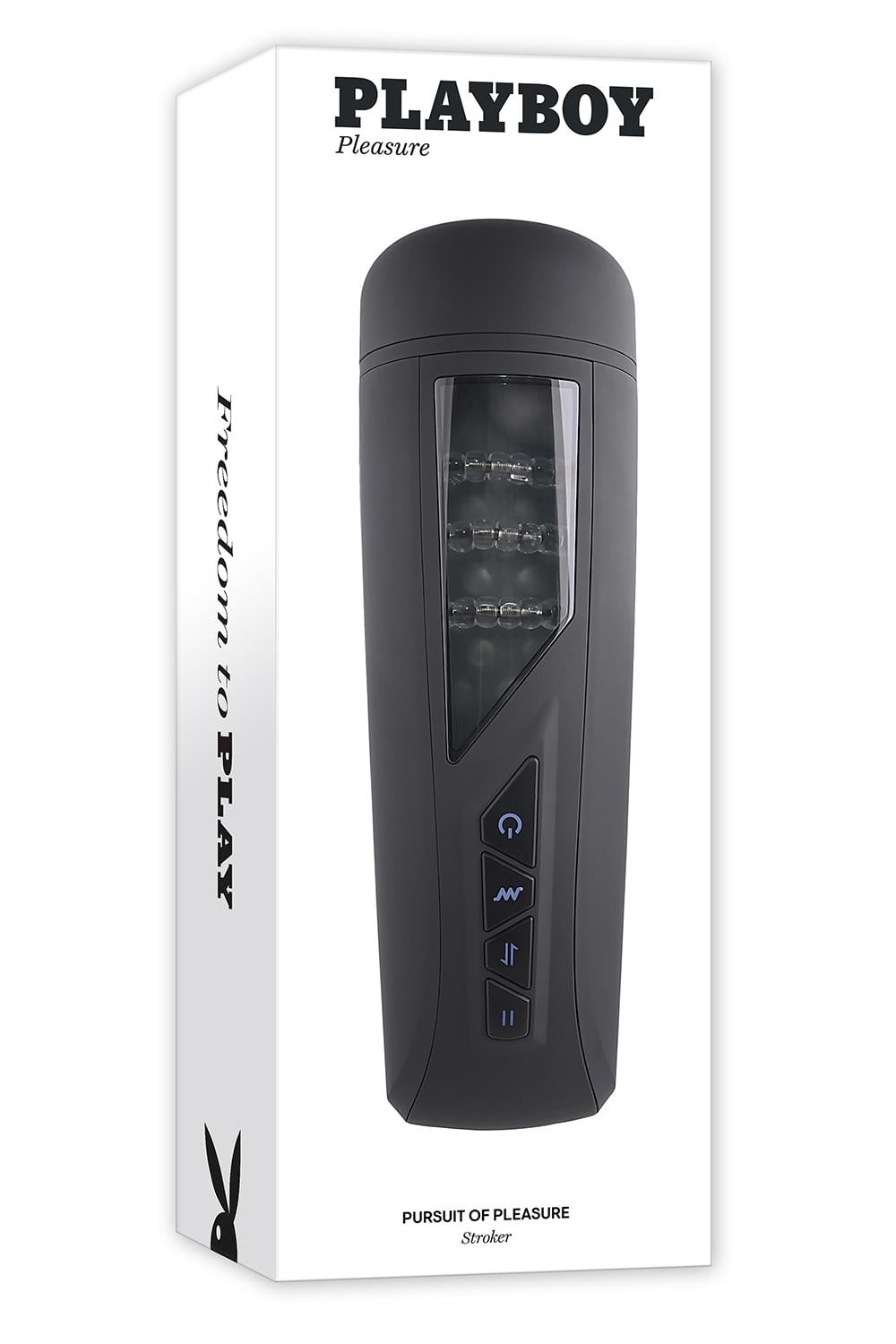 For discerning thrill seekers, Pursuit of Pleasure is a state-of-the-art Stroker with a clear window into the chamber so you can see all of the action. A supple, textured inner channel made of TPE rubber holds you tight as you explore 7 vibrating speeds and rhythms. Beaded rings move up and down the shaft, adding even more stimulation and pleasure. Freedom to play!Play with me (key feature): Vibrating beaded Stroker with voyeur chamberVibration: 7 vibrating speeds & rhythms, 7 ring speeds & rhythmsMaterial: TPE rubber & ABS plasticPhthalate & latex freeSplashproofRechargeable: USB cable includedHeight: 10.7 inch / 27,2 cmDepth: 3.45 inch / 8,8 cmWidth: 3.45 inch / 8,8 cmChannel Depth: 6 inch / 15,2 cm