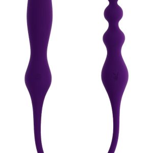 Freedom to Play What are you doing tonight? Oh…This & That! Experience the unexpected sensations that a double-ended toy can deliver. On one end is a flexible, bulbous Vibrator that finishes with a targeted, tapered tip – and on the other end is a flexible, bulbed Vibrating Plug that features 3 round spheres in graduating size and a fourth larger oval that acts as a safety stopper. A thin silicone cord joins the two ends, giving you (or more) lots of freedom to play – up to 32’ (9,7 meters) with the remote control. Ramp up to 10 speeds and rhythms of vibration for intense pleasure that builds to an extraordinary climax – even under water as it’s completely submersible.Play with me (key feature): Dual-ended Vibrator & PlugVibration: 10 speeds & rhythmsMaterial: Body-safe Silicone & ABS (remote), Phthalate & Latex freeWaterproof & SubmersibleRechargeable: USB cable includedToyHeight: 23.5 inch / 59,7 cmDepth: 1.42 inch / 3,6 cmWidth: 1.42 inch / 3,6 cmRemoteHeight: 2.85 inch / 7,2 cmDepth: 1.05 inch / 2,7 cmWidth: 2.06 inch / 5,2 cmVibe Insertable Length: 5.25 inch / 13,3 cmVibe Diameter: 1.42 inch / 3,6 cmPlug Insertable Length: 5.5 inch / 14 cmPlug Diameter: 1.40 inch / 3,6 cm