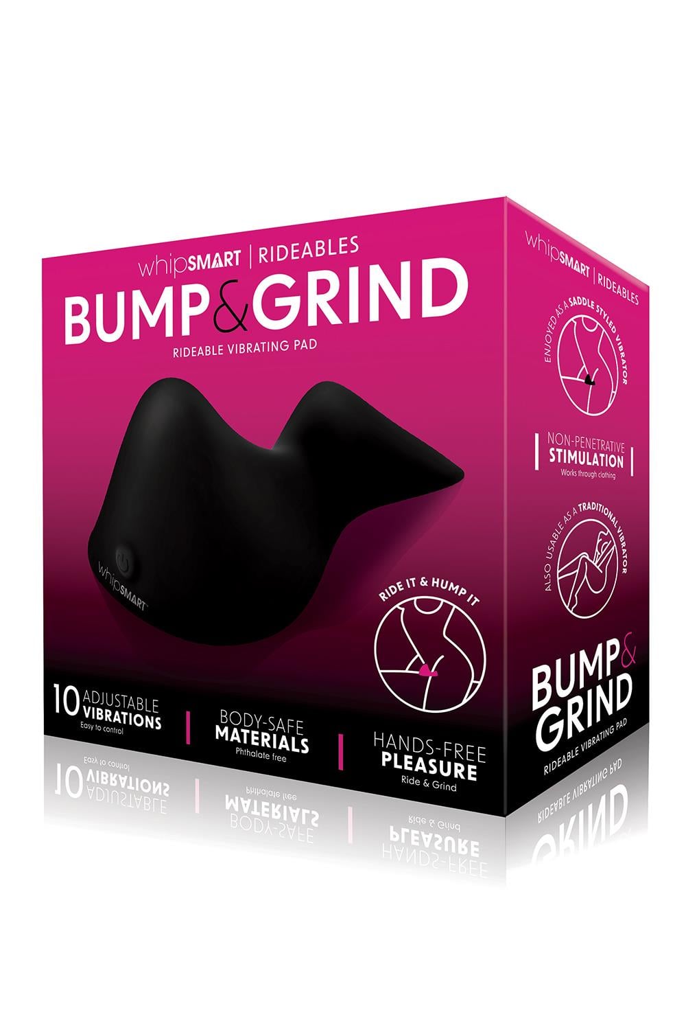 Ciesz się niepenetrującą stymulacją łechtaczki, pochwy i krocza dzięki podkładce wibracyjnej Whipsmart Bump & Grind. Idealny dla każdego, kto lubi się masturbować, ten wibrator w formie siodła jest w pełni przystosowany do zaspokajania Twoich zmysłowych potrzeb, z silniejszymi wibracjami na twardszych powierzchniach i delikatnymi wibracjami na miękkich powierzchniach oraz dwoma garbami dla podwójnej przyjemności. Whipsmart Bump & Grind doskonale sprawdza się również jako tradycyjny wibrator oraz przez ubranie. Wygodne ładowanie za pomocą dołączonej bezprzewodowej podkładki ładującej USB.