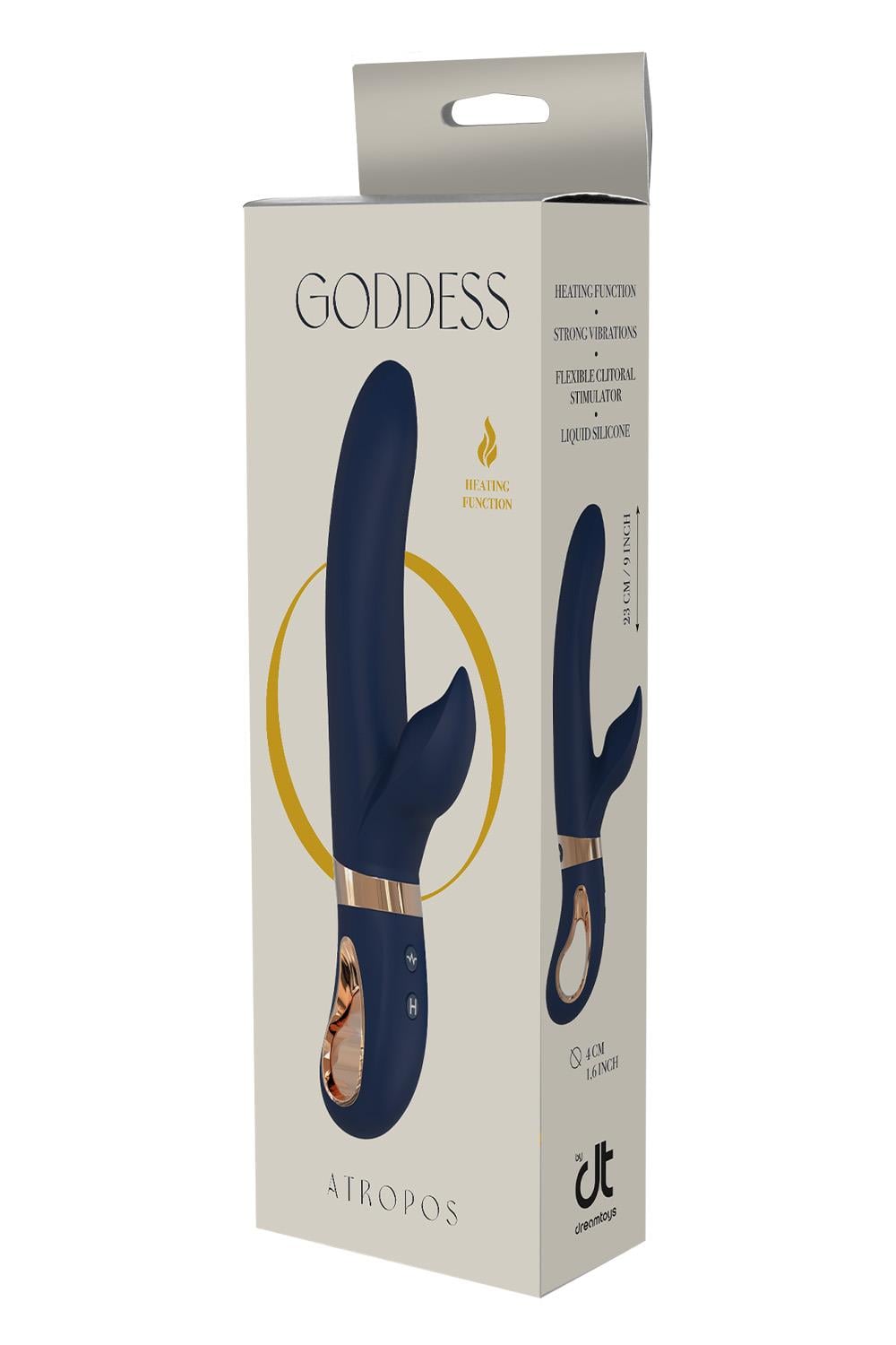 W tym samym stylu, co inne zabawki z kolekcji Goddess, Atropos jest wykonany z ciemnoniebieskiego silikonu ze złotymi detalami. Elegancki podwójny wibrator ma uchwyt w kształcie pierścienia z metalową powłoką, która ułatwia chwytanie i wygląda luksusowo. Wykonany z płynnego silikonu podwójny wibrator ma miękką końcówkę i jest jedwabiście gładki w dotyku. Atropos ma zakrzywiony trzonek, który idealnie nadaje się do stymulacji punktu G. Dzięki mocnemu silnikowi ten podwójny wibrator z pewnością dostarczy silnych wibracji zarówno trzonka, jak i stymulatora łechtaczki, a dzięki 7 rytmom wibracji i 3 prędkościom można znaleźć idealne wibracje na każdy gust. Aby było jeszcze przyjemniej, Atropos posiada funkcję ogrzewania, dzięki czemu wałek będzie przyjemny i ciepły jak temperatura ciała. Nie wahaj się używać Atropos pod prysznicem lub w wannie, jest w pełni wodoodporny. W zestawie magnetyczny kabel USB do ładowania. Czas ładowania 4 godziny. Czas użytkowania 90 minut przy najwyższej prędkości. Bezpieczny dla ciała, wolny od ftalanów i lateksu.