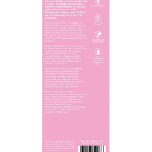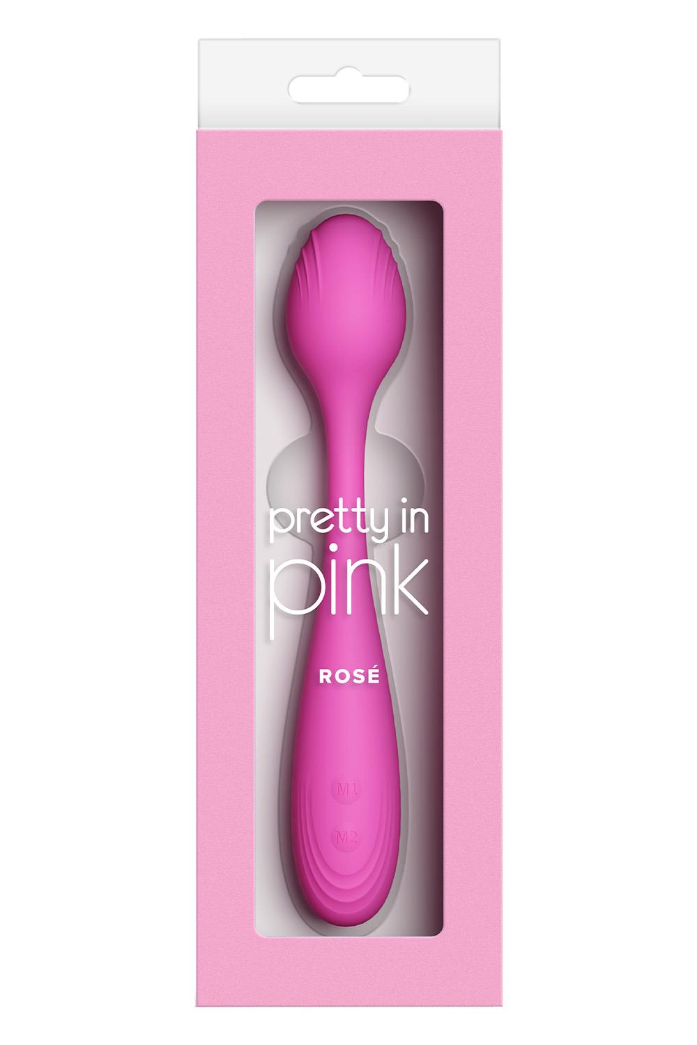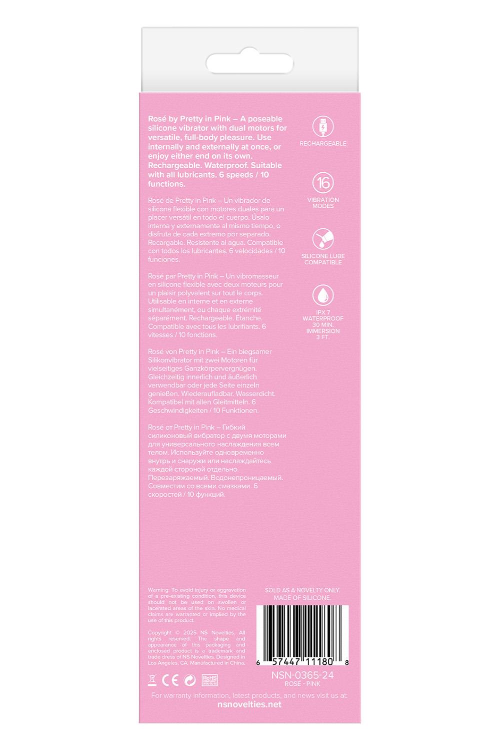 Rosé by Pretty in Pink – A poseable silicone vibrator with dual motors for versatile, full-body pleasure. Use internally and externally at once, or enjoy either end on its own. Rechargeable. Waterproof. Suitable with all lubricants. 6 speeds / 10 functions.Poseable vibratorDual motors16 Vibration modesRechargeableIPX7 waterproofCompatible with all lubricantsProduct Dimensions: 7.64 x 1.26 x 1.26 inch / 19,4 x 3,2 x 3,2 cmInsertable Dimensions: 7.64 x 1.26 inch / 19,4 x 3,2 cmProduct Material: SiliconeCharger type: USB-PinCharge time: 120 minutesRun time: 60 minutes
