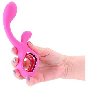 Velvet by Pretty in Pink – A sleek G-spot rabbit vibe with a contoured silhouette and firm, non-flexible design. Made from smooth silicone with ABS accents for a polished finish. Rechargeable. Waterproof. Suitable with all lubricants. 3 speeds / 6 functions.