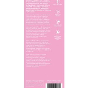 G-spot rabbit vibrator9 Vibration modesRechargeableIPX7 waterproofCompatible with all lubricantsProduct Dimensions: 7.36 x 1.3 x 2.28 inch / 18,7 x 3,3 x 5,8 cmInsertable Dimensions: 4.17 x 1.18 inch / 10,6 x 3,0 cmProduct Material: SiliconeCharger type: USB-MagnetCharge time: 120 minutesRun time: 100 minutes