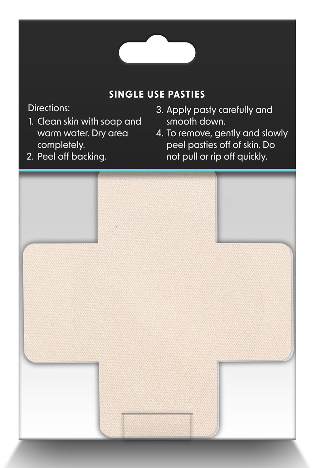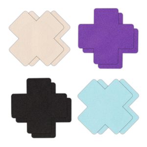 Hearts, Stars, Crosses and more! Pretty Pasties by NS Novelties is a collection of adhesive nipple covers guaranteed to excite and entice. Comfortable and secure during wear and effortless to place and remove. Available in an assortment of shapes, colors, patterns, and finishes – Pretty Pasties are the perfect body décor for a passionate time.Cross shaped pastiesAssorted colours4 pairsProduct material: polyester fibre