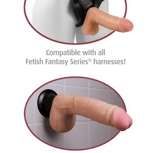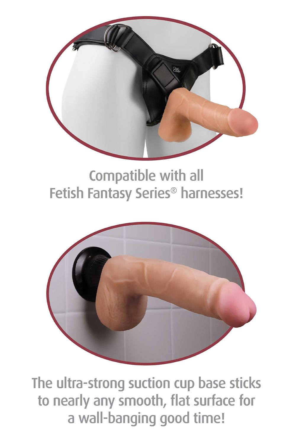 NEW AND IMPROVED! Enjoy the Real Feel® Deluxe No.5 – 8 in. Dildo of velvet-soft, lifelike skin with this incredibly realistic vibe. Meticulously designed with a pronounced head, bulging veins, and free-hanging balls, the super-lifelike shapes, textures, and colors of this vibe truly look and feel like the real thing! Made with lifelike Fanta Flesh®, this squishy material mimics the softness of real skin.The ultra-strong suction-cup base sticks to nearly any smooth, flat surface for a wall-banging good time! Stick it to the floor, wall, tile or bedpost — the super-strong suction-cup will stay securely in place during every passionate thrust, and features a quick-release tab for easy removal. The sturdy suction-cup doubles as a harness-compatible base that remains snug in its place even when the action heats up. Wear this vibrating dildo with any Fetish Fantasy Series harness for the most comfortable and realistic strap-on experience!Take this completely waterproof vibe in the shower, hot tub, or spa and turn bath time into pleasure time!