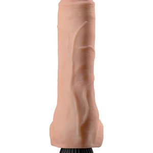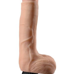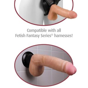 NEW AND IMPROVED! Enjoy the Real Feel® Deluxe No.7 – 9 in. Dildo of velvet-soft, lifelike skin with this incredibly realistic vibe. Meticulously designed with a pronounced head, bulging veins, and free-hanging balls, the super-lifelike shapes, textures, and colors of this vibe truly look and feel like the real thing! Made with lifelike Fanta Flesh®, this squishy material mimics the softness of real skin.The ultra-strong suction-cup base sticks to nearly any smooth, flat surface for a wall-banging good time! Stick it to the floor, wall, tile or bedpost — the super-strong suction-cup will stay securely in place during every passionate thrust, and features a quick-release tab for easy removal. The sturdy suction-cup doubles as a harness-compatible base that remains snug in its place even when the action heats up. Wear this vibrating dildo with any Fetish Fantasy Series harness for the most comfortable and realistic strap-on experience!Take this completely waterproof vibe in the shower, hot tub, or spa and turn bath time into pleasure time!