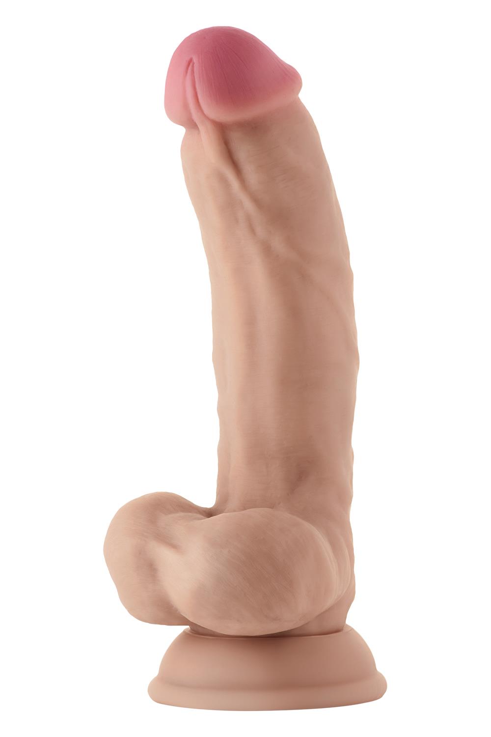Realistyczne dildo z wibracjami i jądrami Shaft Model C 7.5 inch z płynnym silikonem Pine