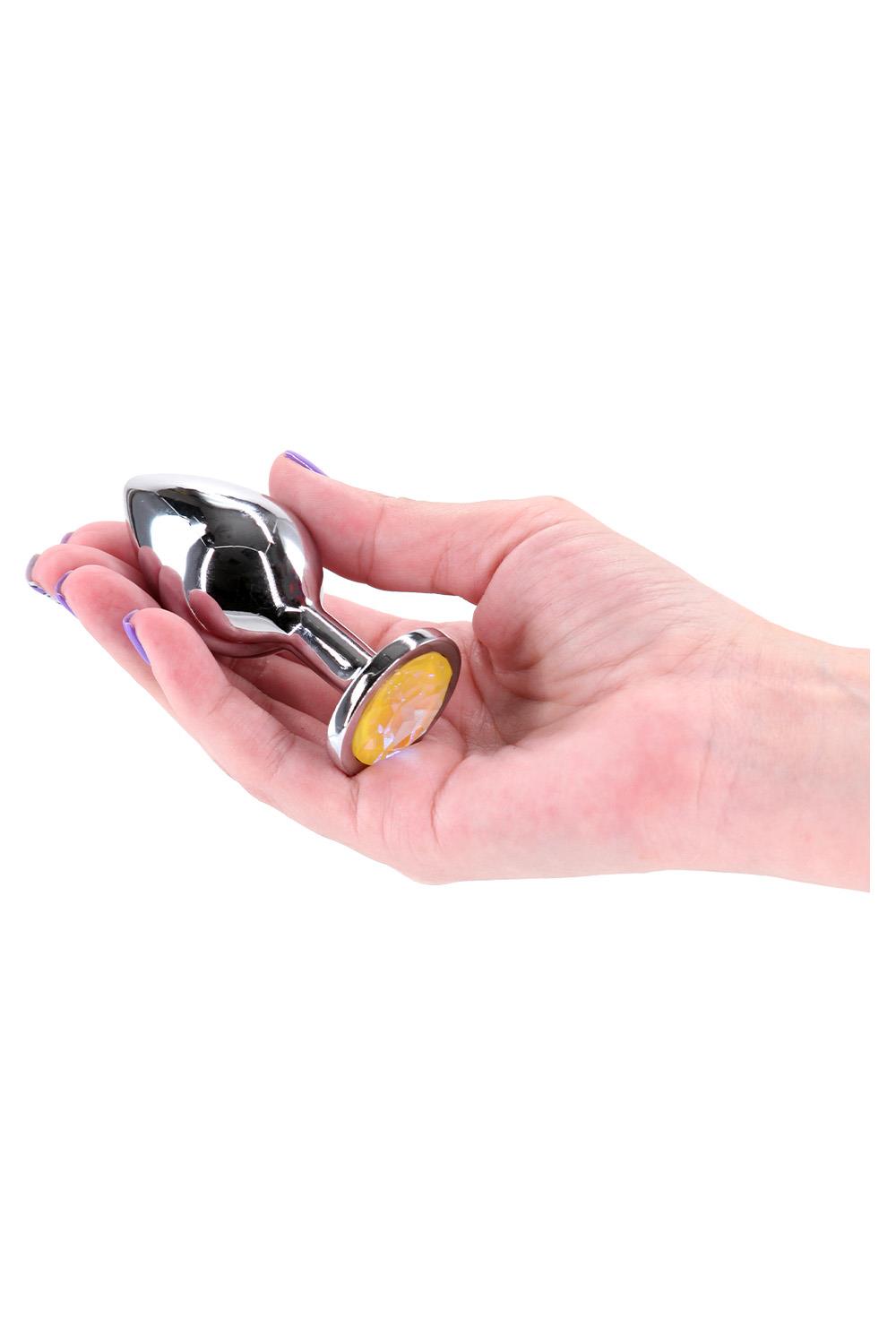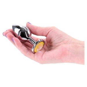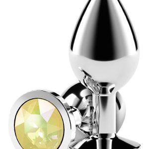 Lightweight, chrome-plated Anal toy designed for visual and sensual excitement. Made of lightweight Aluminum and shaped for effortless penetration, this body safe anal toy is available in a variety of colours, shapes and sizes. Suitable with all lubricants.Lightweight, chrome-plated anal plugSize MMade of aluminumYellow gem stone in baseBody-safeSuitable with all lubricantsProduct Dimensions: 3.31 x 1.38 x 1.38 inch / 8,4 x 3,5 x 3,5 cmInsertable Dimensions: 2.76 x 1.3 inch / 7,0 x 3,3 cmProduct Material: Aluminum