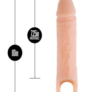 Przedłużacz penisa Performance Plus 10 Inch Cock Sheath zapewnia gładkie, realistyczne odczucie, jednocześnie maksymalizując Twój potencjał. Zyskaj większy obwód i dodatkową długość 1,5 cala! Wewnętrzne użebrowanie zapewnia ssanie, które utrzymuje pochewkę na swoim miejscu. Wzmacnia również doznania dla użytkownika. Wystarczy włożyć penisa do pochewki Performance Plus 10 cali, a następnie przesunąć jądra przez pasek kulkowy. Następnie odkryj nowe wymiary ze swoim partnerem! Wykonany z platynowego silikonu, osłona na penisa Performance Plus 10 cali jest trwała, bezpieczna dla ciała i łatwa do utrzymania w czystości.