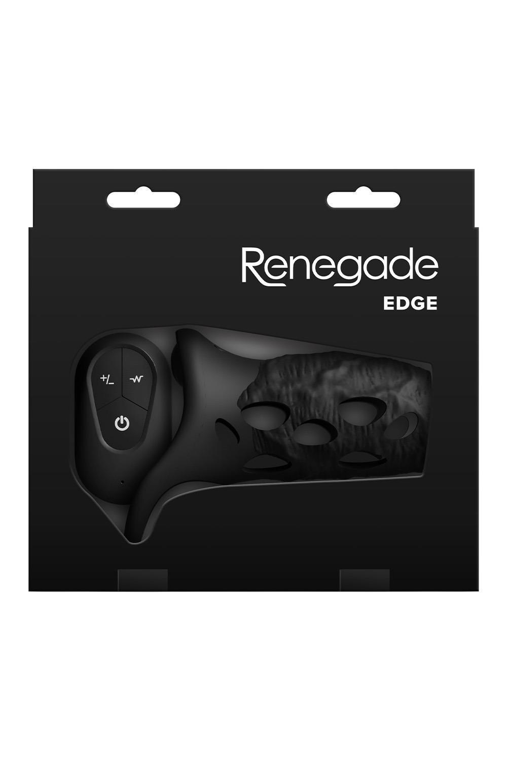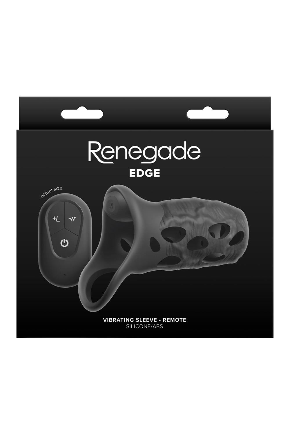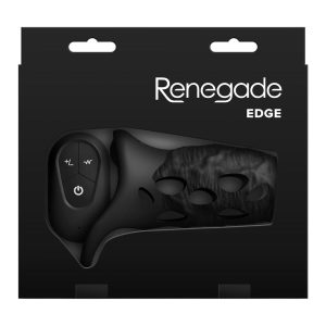 Edge by Renegade is a vibrating penis sleeve with a snug ball drop and remote control for hands-free play. Made of body-safe silicone, Edge offers multiple speeds and functions with three intensity levels. Water-resistant and compatible with all lubricants. CR2032 (1) battery for remote included.Vibrating penis sleeveWith remote controlMultiple speeds and functions with 3 intensity levelsWater resistantRemote contains a CR2032 batteryCompatible with all lubricantsProduct Dimensions:Vibe: 4.53 x 3.5 x 1.89 inch / 11,5 x 8,9 x 4,8 cmRemote: 2.68 x 1.54 x 0.67 inch / 6,8 x 3,9 x 1,7 cmProduct Material: SiliconeCharger type: USB-PinCharge time: 120 minutesRun time: 45 minutes