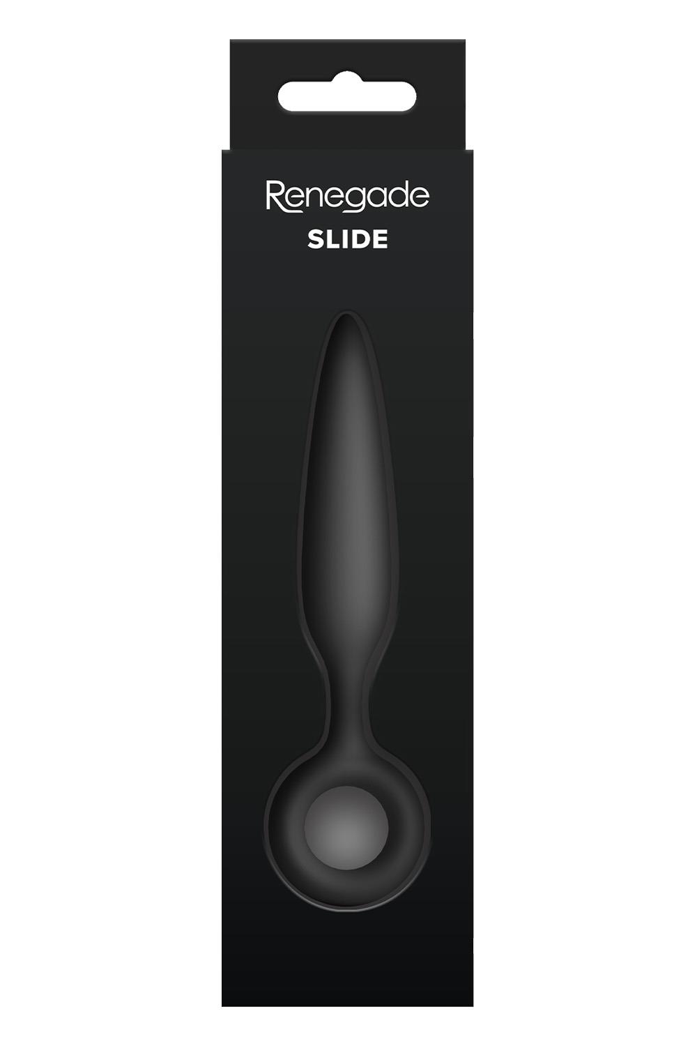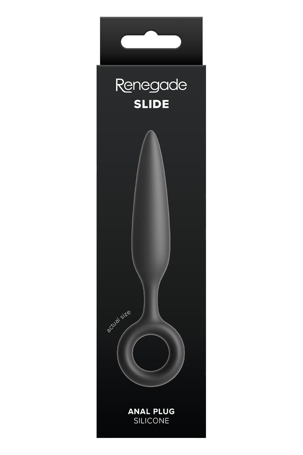 Renegade’s Slide is a tapered and slim anal plug made of plush silicone with finger ring for comfort and control. Perfect for beginners. Compatible with all lubricants.Tapered and slim anal plugWith finger ringCompatible with all lubricantsProduct Dimensions: 5 x 1.34 x 0.79 inch / 12,7 x 3,4 x 2,0 cmInsertable Dimensions: 3.54 x 0.79 inch / 9,0 x 2,0 cmProduct Material: Silicone