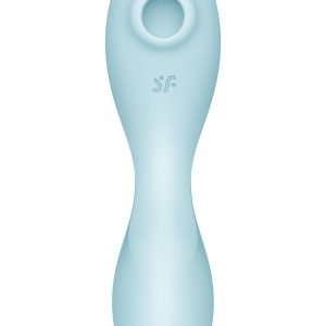 The Curvy Trinity 5 from Satisfyer is an air pulse stimulator, a 3-in-1 toy for huge fun! Three powerful motors, three wonderful functions, one delightful device: Meet the Satisfyer Curvy Trinity 5+ Connect App! Living up to its name, this exceptional love toy guarantees divine pleasure by serving as a lay-on, G-spot and pressure wave vibrator. And for even more heavenly delight, you can connect this Satisfyer device to our award-winning Satisfyer Connect App Compatible with the free Satisfyer App – Available on iOS and Android. Clitoral stimulation with air-pulse waves and G-spot stimulation with vibrations. Thanks to its waterproof (IPX7) surface, this sexual wellness device can be safely used in water and is easy to clean. Curvy Trinity 5 Connect App 3-in-1