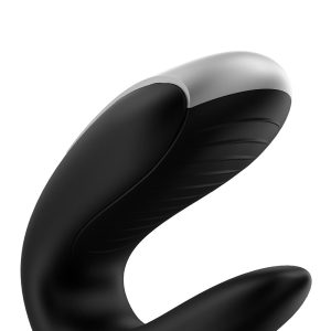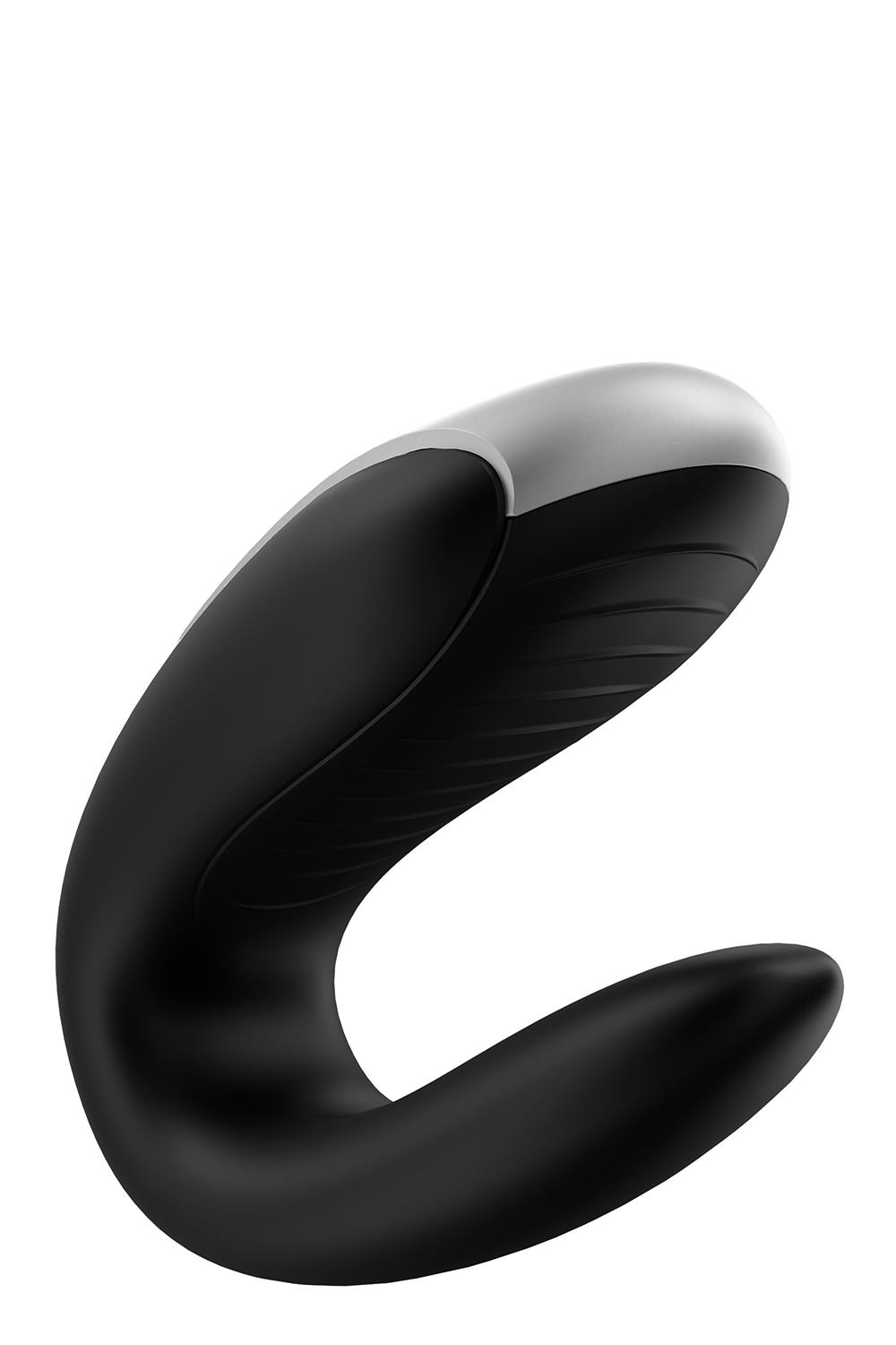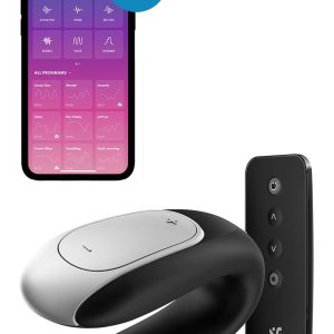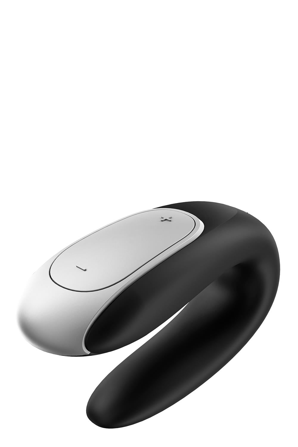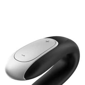 The Double Fun powerfully stimulates both partners during sex. The U-shape is fitted both inside and outside – ensuring a seductive feeling for the clitoris, G-spot, and penis. App enabled, this high-tech toy is enhanced with remote play and more! Compatible with the free Satisfyer App, available on iOS and Android. Two powerful motors transmit intense vibration rhythms throughout the entire toy. Ideally suited for couples.This U-shaped vibe will spice up penetrative sex for both partners and aims to especially please the G-spot and clitoris. Made of soft flexible body safe silicone this sensual vibe features a unique hinged action which adds to the pleasure with every thrust.Double Fun comes paired with a signature remote control for easy, in the moment setting changes, as well as being Satisfyer Connect app enabled for extensive and unlimited control. The Double Fun upgrades your play with a strong shape, sleek metallic details, and a strong quiet motor. Make your adventure double as fun by taking it underwater. Thanks to the IPX7 waterproof rating, the Double Fun is completely waterproof! Time to double down on pleasure!What can the Satisfyer Double Fun couples vibrator do?The Satisfyer Double Fun will enrich your love life with powerful vibrations that stimulate both of you sensually. The classic U-shape couples vibrator is worn during lovemaking and stimulates the entire penis as well as the G-spot with its insertable shaft. The second motor is hidden at the other end of the couples vibrator and stimulates the clitoris at the same time. The couples vibrator is made of body-friendly silicone, which feels especially soft on the skin. Your fun together can also continue in the shower or bathtub: Thanks to its waterproof (IPX7) finish, the Satisfyer Double Fun is the ideal companion for wet and wild pleasure. If your device ever runs out of steam, you can recharge the integrated batteries with the included USB charging cable.Couples vibrator with remote control and app controlIt’s also intuitive to control: The various vibration programs can be controlled via the control panel on the couples vibrator itself, via the included wireless remote control or via the Satisfyer Connect App. You can discover even more upgrades for your lovemaking with app: You can create your own vibration programs, take control of your partner’s Satisfyer or link your account to Spotify and more – there’s a lot to discover! The app is free and available for Android, iOS and Apple Watches.Partner use, ideally suited for couplesCompatible with the free Satisfyer App – available on iOS and Android2 Super-strong power motors10 Vibration programsWith wireless remote controlCan also be used without the appPreset programmes can be editedApp offers an unending range of programmesWhisper modeMade of body-friendly siliconeRechargeableMagnetic USB charging cable includedEasy to cleanWaterproof IPX7Length 9,35 cmHeight 6,17 cmWidth 4,2 cmWeight 96,5 gr