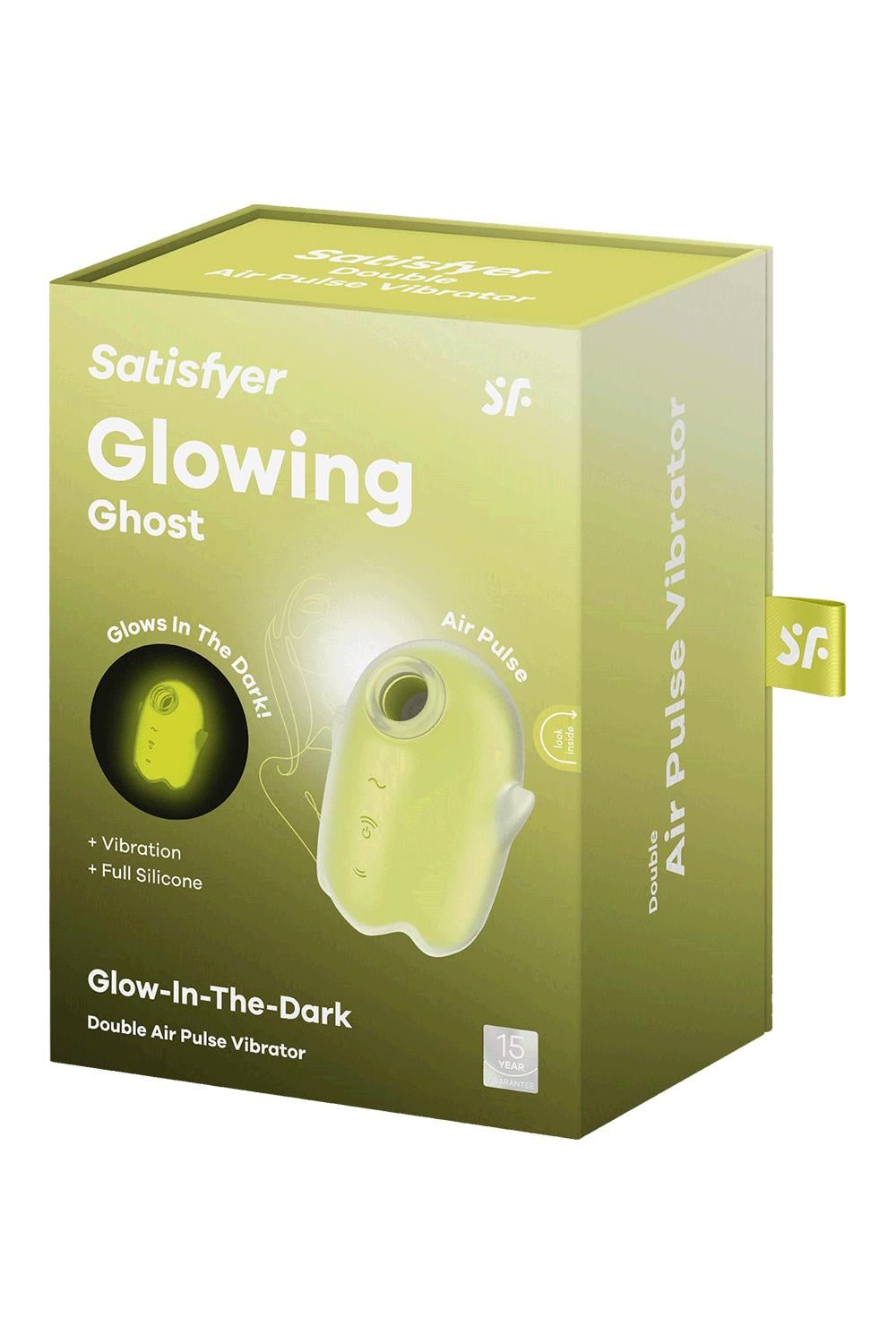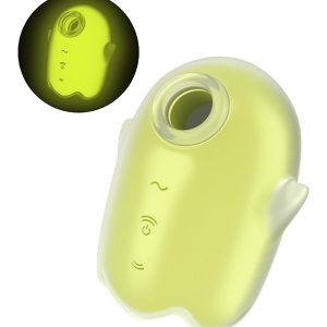 A little love toy for scary good climaxes: The Satisfyer Glowing Ghost is the latest addition to the Satisfyer air pulse vibrator line, giving you goosebumps of pleasure with Satisfyer’s beloved Air Pulse technology and intense vibrations. Stimulates the clitoris using intense pressure waves without direct contact. Made from super-soft, body-friendly, medical-grade silicone that’s smooth to the touch and extremely hygienic. Thanks to its waterproof (IPX7) finish, this toy can be used safely in water and is easy to clean. Clitoral stimulation through pressure waves and vibrationGlows in the darkBody-friendly siliconeWaterproof IPX711 pressure wave intensities + 12 vibration settings2 independently controlled motorsSatisfyer Glowing Ghost: The best vibrator for beginnersThe Satisfyer Glowing Ghost is the perfect vibrator for everyone who has little to no experience with using vibrators or other love toys: With its cute design and compact size, this pressure wave vibrator won’t scare away beginners. With its surface made of super soft, skin-friendly silicone, the opening of this Satisfyer air pulse vibrator gently embraces your clitoris and stimulates it with hot and touch-free pressure waves. Thanks to 11 different intensities, you decide for yourself how intense you want the stimulation to be. And for even more sexy goosebumps, this pleasure product features 12 additional vibration programs that you can combine with the pressure waves. The vibration feature can also be controlled independently, so you can also use the little ghost as a classic lay-on vibrator.Satisfyer Glowing Ghost: Waterproof (IPX7) vibrator with fluorescent surfaceThe Satisfyer Glowing Ghost also comes with another very special feature: Thanks to a fluorescent silicone layer, this pressure wave vibrator glows in the dark – so it certainly won’t get lost under the sheets…. In addition, the Satisfyer Glowing Ghost keeps haunting you (in a sexy way, of course!) under water: with a waterproof (IPX7) finish it will join you with pleasure under the shower or in the bathtub. And when the battery of this air pulse vibrator is empty, you don’t have to worry that it will ghost you forever: Just recharge it with the included USB charging cable.