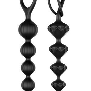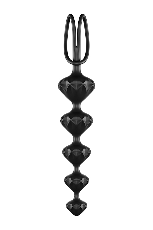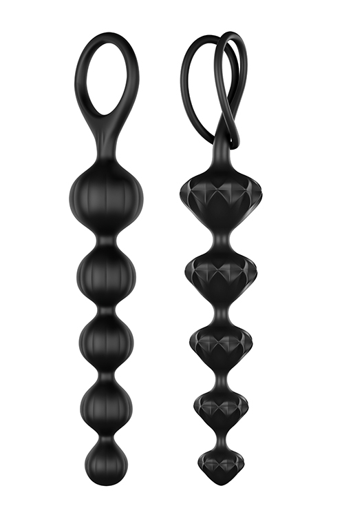 Bead up your love life and dive into a world of sensual anal adventures with the Love Beads. Whether you use them for steamy solo sessions or want to introduce them to your love life as a couple: you can’t go wrong with these seductive joy bringers. They come in a sensual set of two and want to make you and your back passage happy. Thanks to their ascending shape and rounded tips, these 5-piece bead chains are ideal for newcomers to anal training and those who wish to explore anal pleasures: the smallest element of the pink chain is 2 cm in diameter, while the largest is 3.4 cm. In the diamond-shaped chain, the diameters range from 2.1 to 3.7 cm – in other words the chains have been designed to get slowly bigger. Experience the tingling excitement as you pull the chain out bead by bead, stimulating your back passage in an arousing way. Thanks to the practical strap, you can indulge in carefree sensual adventures.Ideal for beginners & anal training2 Sensual structuresIncreasing diameterSupport rings for safe pleasureSkin friendly soft siliconeEasy to cleanDimensions: 2,8 x 20,5 cm and 3,3 x 20,5 cm