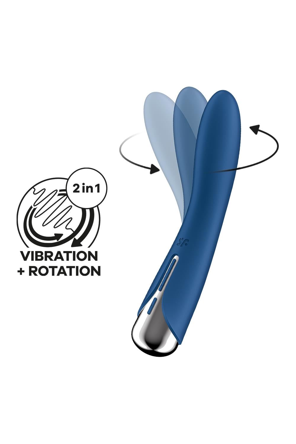 Your pleasure will turn its head right round! The Satisfyer Spinning Vibe 1 is a G-spot vibrator that takes you for a spin with its exciting rotating head and intense vibrations. G-spot stimulation through rotation and vibration. Ideally designed to hit the G-spot for intense stimulation. Thanks to its waterproof IPX7 finish, this toy can be used safely in water and is easy to clean. Body-friendly siliconeWaterproof IPX712 vibration programs5 rotation settingsWhisper modeEasy to cleanRechargeable Li-ion batteryMagnetic USB charging cable includedAuthentic stimulation with the Satisfyer Spinning Vibe 1For those of you who can’t get enough of their G-spot or are just discovering it: the rotating G-spot vibrator called Spinning Vibe 1 provides an especially exciting kind of stimulation. We all know: The G-spot, it’s not just a spot – it’s more like a zone. This vibrator expertly massages it with its rotating head: the Satisfyer Spinning Vibe 1 features 5 rotation speeds (clockwise as well as counterclockwise) and only you decide whether you like it slow or fast. This kind of stimulation feels very natural – an intensely beautiful experience! Enhance this feeling by switching on the vibration: 12 vibration programs, from gentle to ultra-strong, bring your G-spot – or should we say, your G-zone – to dizzying highs. Have fun finding your favorite setting: Rotation and vibration can be controlled separately.Satisfyer Spinning Vibe 1: You spin me right round, babyThe slightly curved shaft of the Satisfyer Spinning Vibe 1 with its rounded tip and the ergonomic design ensure that you hit exactly the right spots (or zones) and that you can insert the vibrator comfortably. It is also made of medical-grade silicone, which not only feels smooth on the skin, but is also absolutely body-friendly. Attention, whirlpools: Take the waterproof (IPX7) Spinning Vibe 1 with you into the bathtub (or under the shower) and enjoy pleasurable moments there as well. Clean the G-spot vibrator with a little soap and water or toy cleaner and recharge it via USB cable. The Satisfyer Spinning Vibe 1 will treat you and your G-spot to intense vibrations and rotating movements – are you ready to feel the spin?