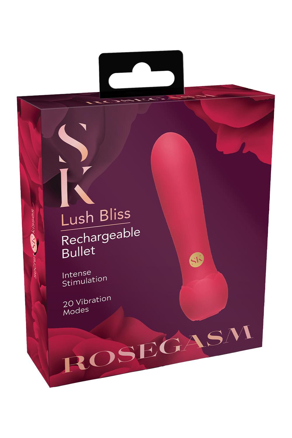 Discover pleasure like never before with the Lush Bliss bullet vibrator. Designed for indulgence, it features 20 powerful vibration modes to suit every mood and desire. Crafted from rose-petal-smooth silicone, this compact gem glides effortlessly across the skin for a luxuriously soft touch. Rechargeable and whisper-quiet, the Lush Bliss delivers intense satisfaction anytime, anywhere, bringing elegance and excitement together in perfect harmony.20 Vibration ModesSoft Inseratble TipSplashproofMade from bodysafe siliconeMagnetic USB RechargeablePackaging: Box w/ Hang TabMaterials: ABS Plastic, SiliconeWeight: 0.14 lbs / 63 grLength: 4.25 inch / 10,8 cmWidth: 0.50 inch / 1,3 cmHeight: 0.50 inch / 1,3 cmWhat’s included:Rechargeable BulletStorage BagMagnetic USB Charging CableInstruction Manual