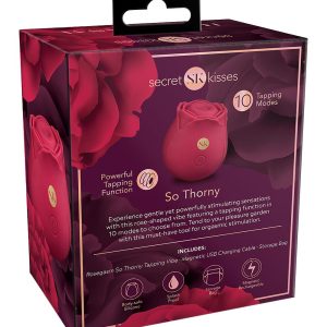 Experience the Rosegasm So Thorny Tapping Vibe, gentle yet powerfully stimulating sensations with this rose-shaped vibe featuring 10 tapping modes to choose from. Tend to your pleasure garden with this must-have tool for orgasmic stimulation.10 tapping modesPowerful tapping functionSplashproofMade from bodysafe siliconeMagnetic USB RechargeableHeight: 3.27 inch / 8,3 cmWidth: 2.7 inch / 6,9 cmWeight: 0.25 lbs. / 113 gramsMaterials: SiliconeLithium Ion BatteryIncluded:VibeStorage BagMagnetic USB Charging CableInstruction Manual