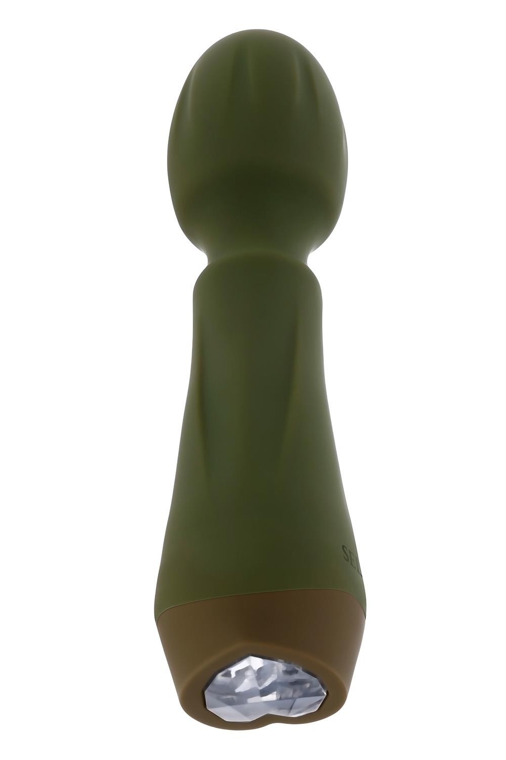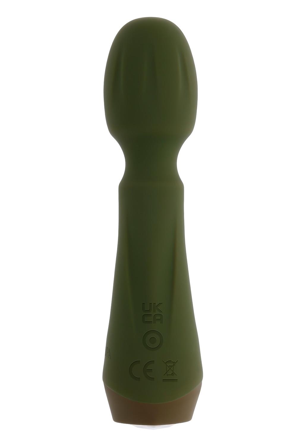 Experience the magic of this petite yet powerful wand vibrator with its chunky, textured, flexible head and heart-shaped gem control button at its base.10 vibrating speeds and patternsMade from phthalate and latex-free silicone and ABSUSB rechargeable, cable includedHeight: 5.29 inch / 13,4 cmDepth: 1.31 inch / 3,3 cmWidth: 1.31 inch / 3,3 cmInsertable length: 1.61 inch / 4 cmInsertable diameter 1.24 inch / 3,1 cmWaterproof