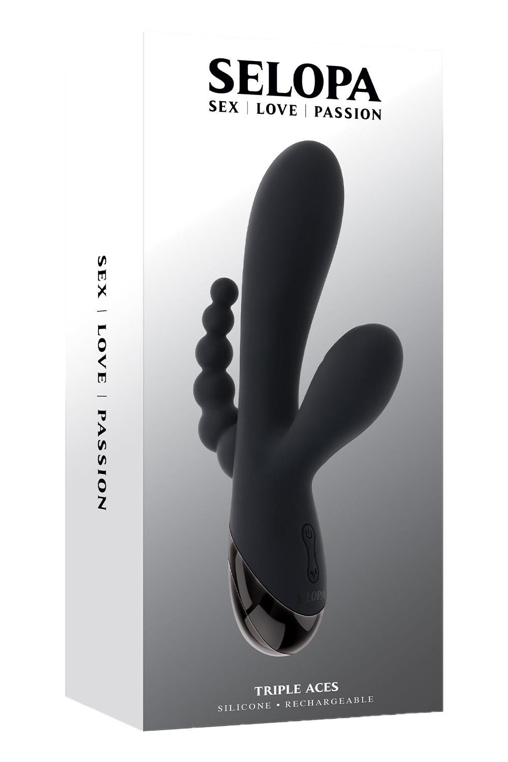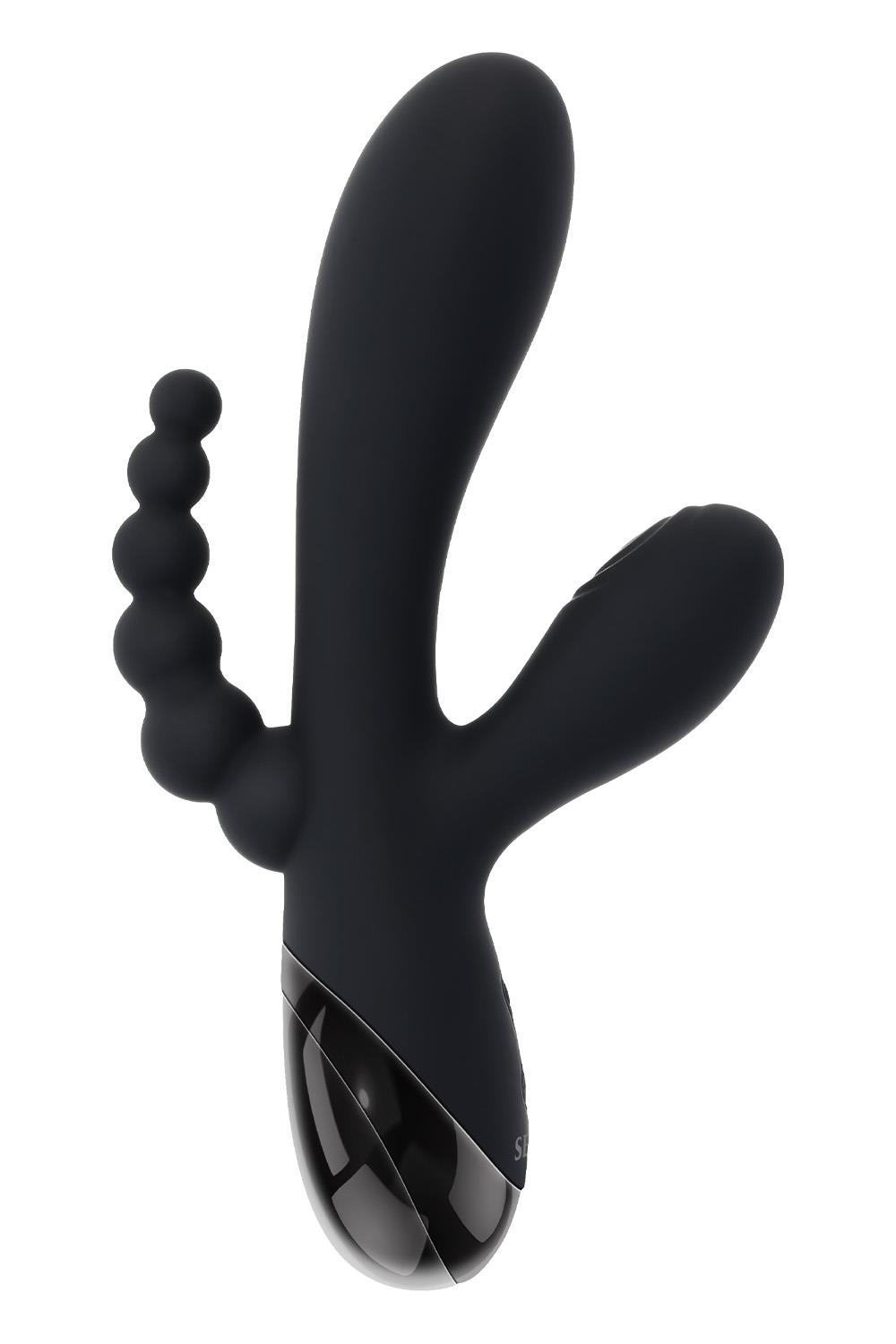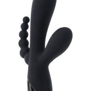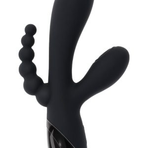 This triple-shaft vibrator features a powerful main shaft, a stimulator that taps at the head, and graduated, flexible anal beads – all customizable with two independent motors.10 vibration speeds & patterns10 tapping speeds & patternsMade from phthalate & latex-free silicone & ABSUSB rechargeable, cable includedHeight: 7.75 inch / 19,7 cmDepth: 4.12 inch / 10,5 cmWidth: 1.63 inch / 4,1 cmInsertable length: 4.25 inch / 10,8 cmInsertable diameter: 1.43 inch / 3,6 cmWaterproof