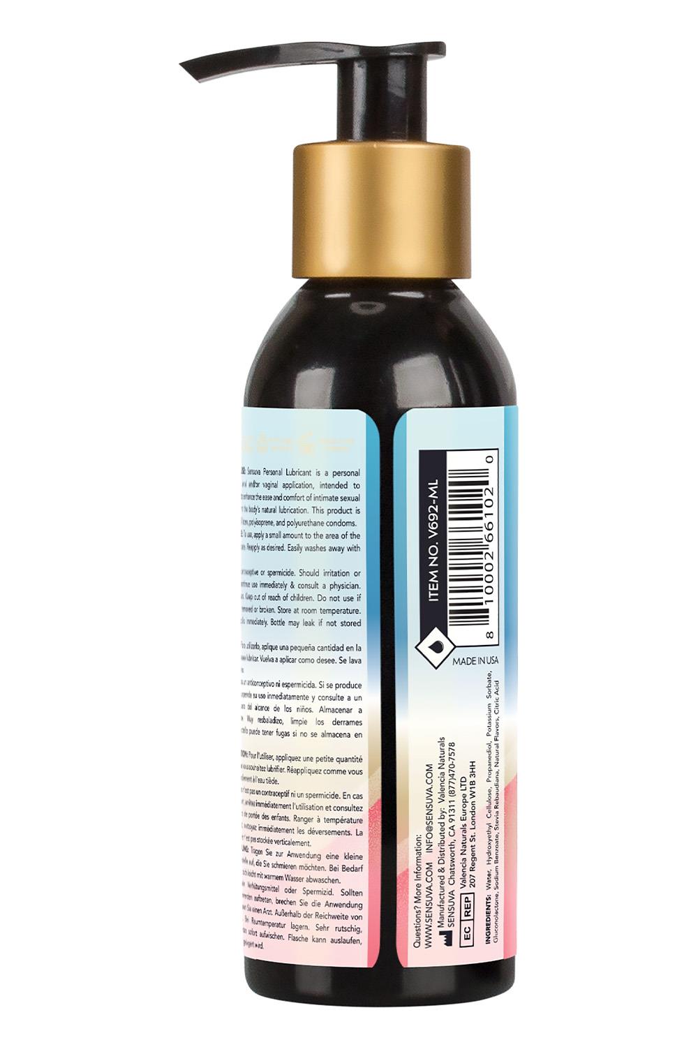 Sensuva’s Flavored Natural Water-Based Formula is a clean, high-quality personal lubricant that feels the closest to your own natural lubrication. Made with healthy, body-safe ingredients, this water-based personal moisturizer provides a long-lasting, comfortable feeling that will enhance your personal pleasure with a hint of sweet delicatable flavors. 99% Natural and Free from Glycerin, Gluten and Parabens. FDA 510(K) certified.Ingredients:Water, Hydroxyethyl Cellulose, Propanediol, Potassium Sorbate, Gluconolactone, Sodium Benzoate, Stevia Rebaudiana, Natural Flavors, Citric Acid 99% NaturalGlycerin FreeParaben FreeGluten FreeVeganNon-tacky and long-lasting formulaVery hydrating