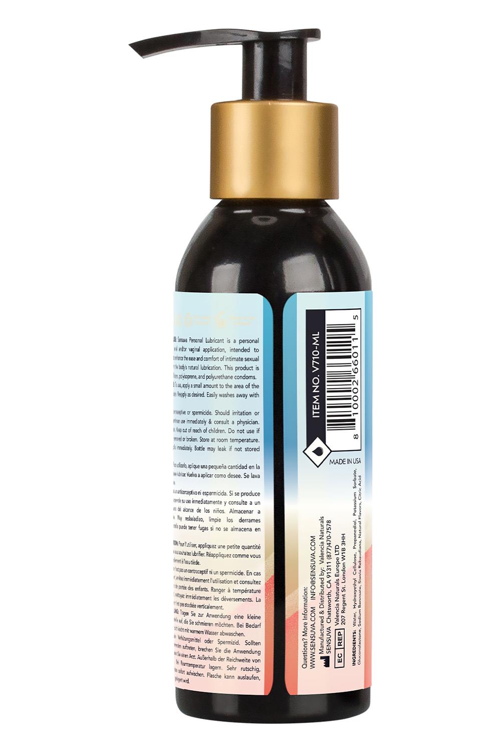 Sensuva’s Flavored Natural Water-Based Formula is a clean, high-quality personal lubricant that feels the closest to your own natural lubrication. Made with healthy, body-safe ingredients, this water-based personal moisturizer provides a long-lasting, comfortable feeling that will enhance your personal pleasure with a hint of sweet delicatable flavors. 99% Natural and Free from Glycerin, Gluten and Parabens. FDA 510(K) certified.Ingredients:Water, Hydroxyethyl Cellulose, Propanediol, Potassium Sorbate, Gluconolactone, Sodium Benzoate, Stevia Rebaudiana, Natural Flavors, Citric Acid 99% NaturalGlycerin FreeParaben FreeGluten FreeVegan