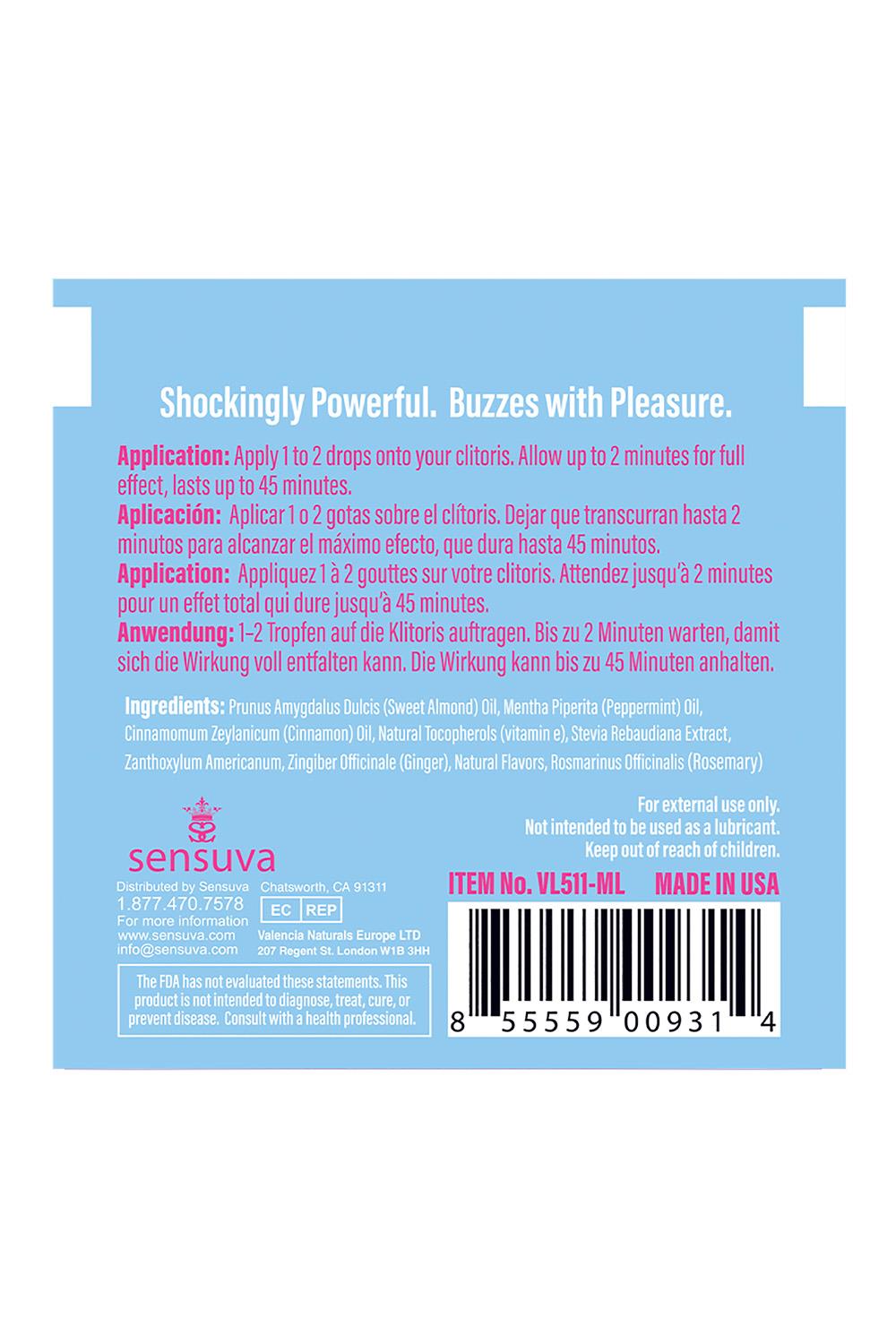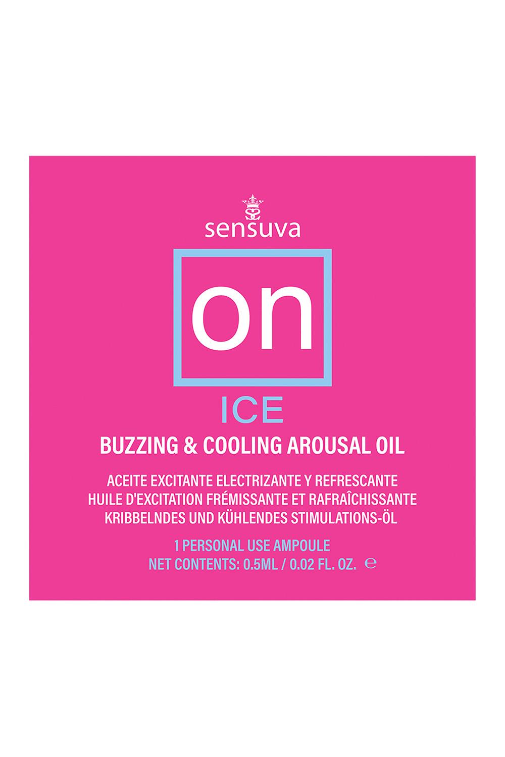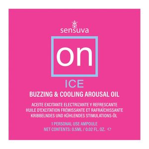 On™ Ice Arousal Oil creates a cooling sensation that tingles, pulsates and vibrates the clitoris. Shockingly Powerful. Buzzes with Pleasure. Cool & Tingly. On™ is made with a natural botanical blend of essential oils to create feelings of natural arousal and may increase self-lubrication in most users.Ingredients:Prunus Amygdalus Dulcis (Sweet Almond) Oil, Mentha Piperita (Peppermint) Oil, Cinnamomum Zeylanicum (Cinnamon) Oil, Natural Tocopherols (vitamin e), Stevia Rebaudiana Extract, Zanthoxylum Americanum, Zingiber Officinale (Ginger), Natural Flavors, Rosmarinus Officinalis (Rosemary)VeganCruelty FreeParaben FreeGluten FreeGlycerin Free