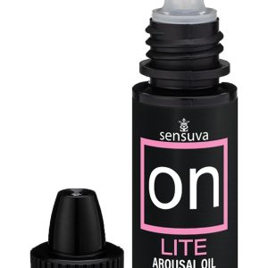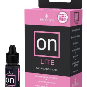 On™ Lite Arousal Oil creates an exciting sensation that pulsates and vibrates the clitoris. Shockingly Powerful. Buzzes with Pleasure. On™ Lite is 50% less intense than the ORIGINAL. On™ is made with a natural botanical blend of essential oils to create feelings of natural arousal and may increase self-lubrication in most users.Great choice for women going through menopause and changes in hormones caused by medication.Apply 1-2 drops directly to the clitoris. Effects may last between 20-60 minutes. Ingredients:Prunus Amygdalus Dulcis (Sweet Almond) Oil, Cinnamomum Zeylanicum (Cinnamon) Oil, Natural Tocopherols (vitamin e), Stevia Rebaudiana Extract, Zanthoxylum Americanum, Zingiber Officinale (Ginger), Natural Flavors, Rosmarinus Officinalis (Rosemary)VeganCruelty FreeParaben FreeGluten FreeGlycerin FreeMenthol Free100% naturalSafe for oral playCreates a tingling sensation50 applications in each bottle25% less intense than original