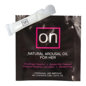 On™ Original Arousal Oil creates an exciting sensation that pulsates and vibrates the clitoris. Shockingly Powerful. Buzzes with Pleasure. Designed to enhance intimacy, On™ Original increases orgasm intensity, enhances clitoral sensitivity, elongates pleasure duration and frequency. On™ is made with a natural botanical blend of essential oils to create feelings of natural arousal and may increase self-lubrication in most users.Ingredients:Prunus Amygdalus Dulcis (Sweet Almond) Oil, Cinnamomum Zeylanicum (Cinnamon) Oil, Natural Tocopherols (vitamin e), Stevia Rebaudiana Extract, Zanthoxylum Americanum, Zingiber Officinale (Ginger), Natural Flavors, Rosmarinus Officinalis (Rosemary)VeganCruelty FreeParaben FreeGluten FreeGlycerin Free