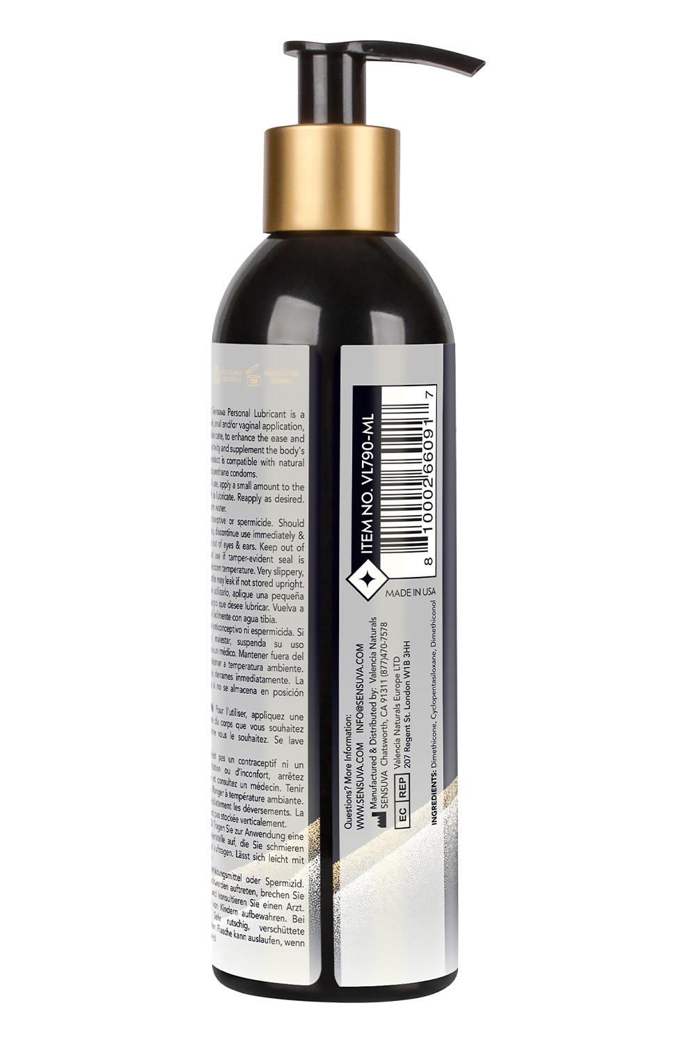 Sensuva’s Premium Silicone is made solely from a blend of three superior quality, medical-grade silicones. Never sticky, Sensuva’s Premium Silicone has a superior glide that feels smooth and ultra silky. It is by far the longest lasting of all personal lubricants. FDA 510(k). Additionally, the Premium Silicone is fun to use in combination with massage or water play.Ingredients:Dimethicone, Cyclopentasiloxane, Dimethiconol VeganGlycerin FreeParaben FreeGluten FreeThe longest lasting of all moisturizersUltra-silky touch