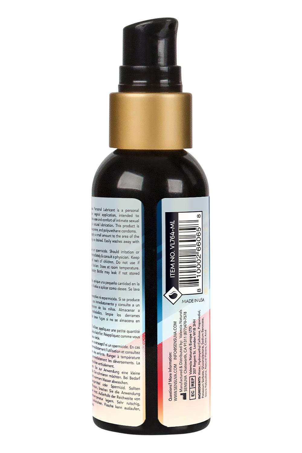 Sensuva’s Flavored Ultra-Thick Natural Water Based Personal Lubricant is ultra-thick, making it ideal for anyone who wants something that stays on the surface of the skin longer with a hint of sweet delicatable flavors. 99% Natural and Free from Glycerin, Gluten and Parabens. FDA 510(K) certified.Ideal for anal playIngredients:Water, Hydroxyethyl Cellulose, Propanediol, Potassium Sorbate, Gluconolactone, Sodium Benzoate, Stevia Rebaudiana, Natural Flavors, Citric Acid99% NaturalGlycerin FreeParaben FreeGluten FreeVeganIdeal for anal play