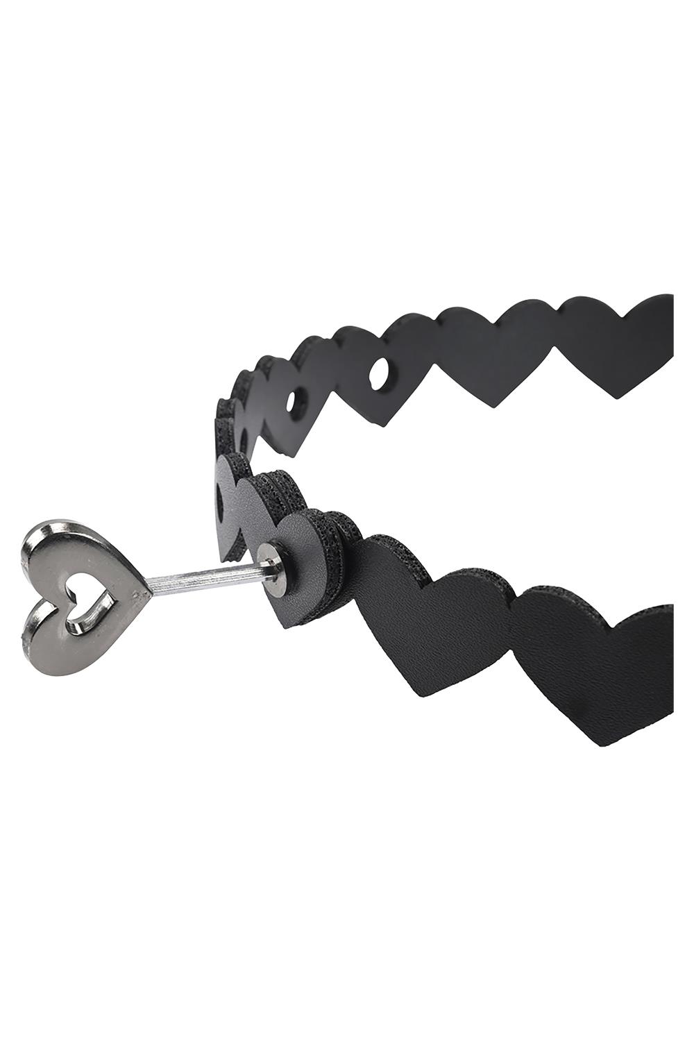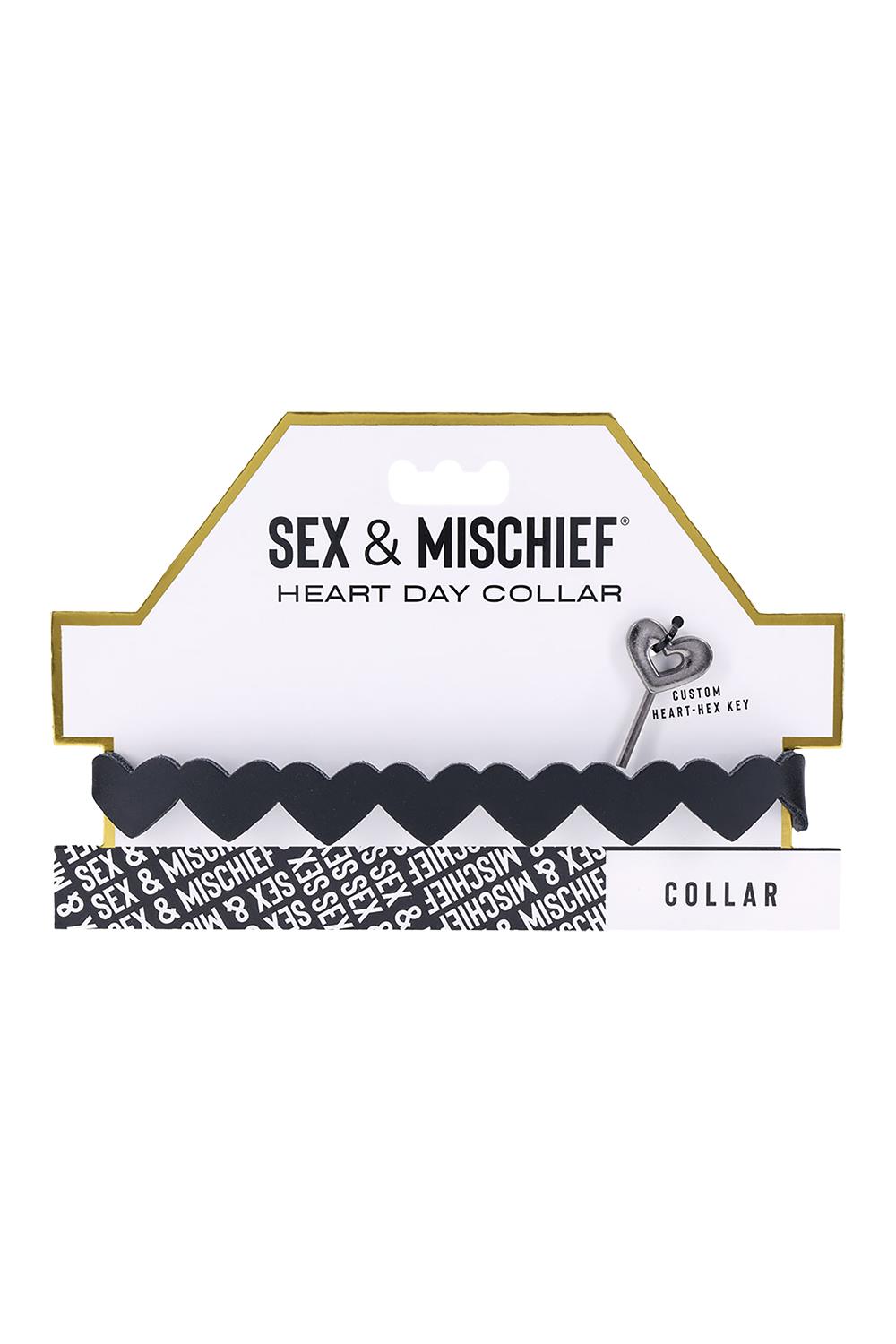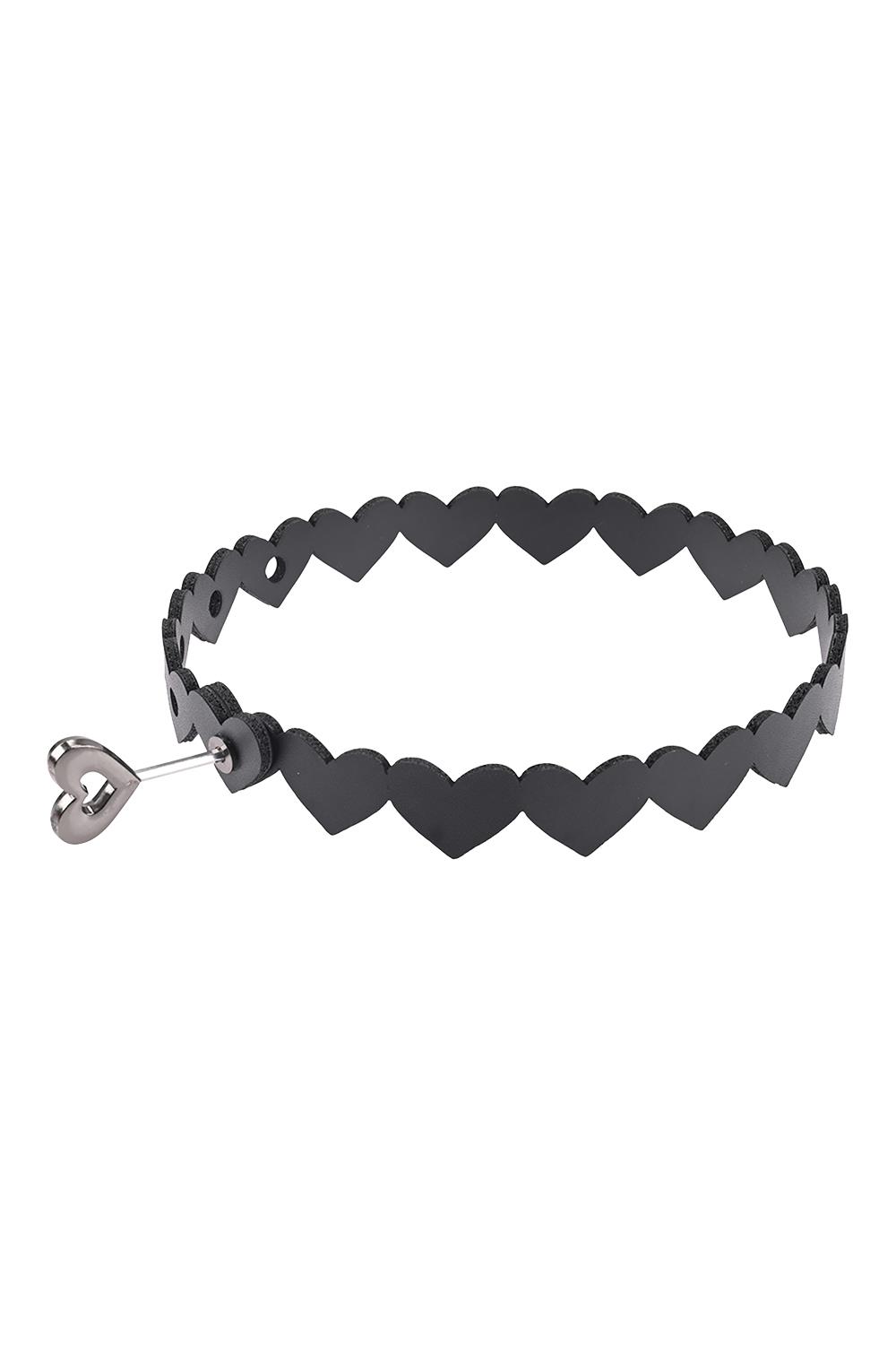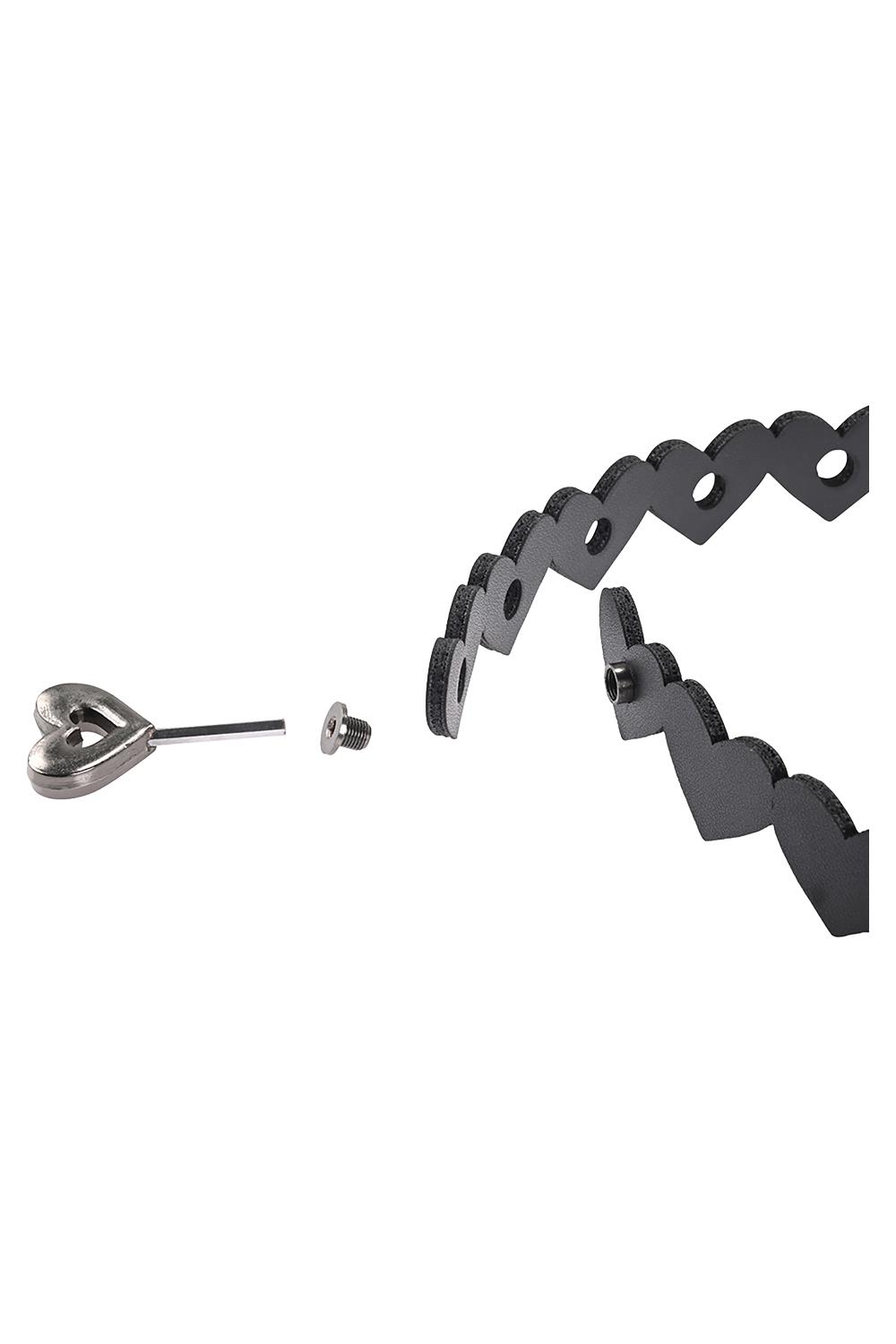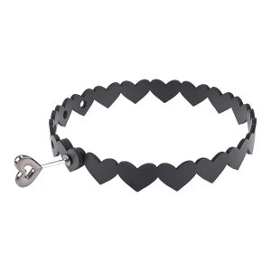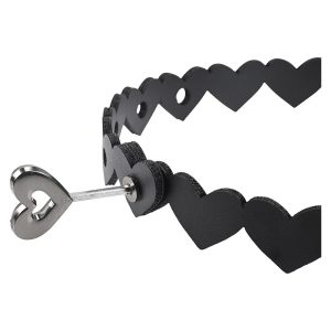 Turn up the heat with the Heart Day Collar and add a touch of mystery and seduction to your everyday look. Crafted from sumptuous faux leather, this choker style necklace is designed with connected hearts and can be locked in place for ultimate control and submission. Whether you’re looking to spice things up in the bedroom or simply add a hint of naughtiness to your daily style, the Heart Day Collar is sure to capture attention and leave them wanting more. So go ahead and indulge in a little flirtatious fun – you know you want to!Custom heart-hex key locks collar in placeSupple faux leather allows for comfortable all day wearAdjustable length to fit necks 15″ to 19″ / 38,1 to 48,2 cmIncludes:One Custom Heart Hex KeyOne PU Heart Necklace StrapOne Hex Bolt and Threaded NutMaterials: 80% PU, 10% Zinc alloy, 5% Iron, 5% CopperThe Sex &