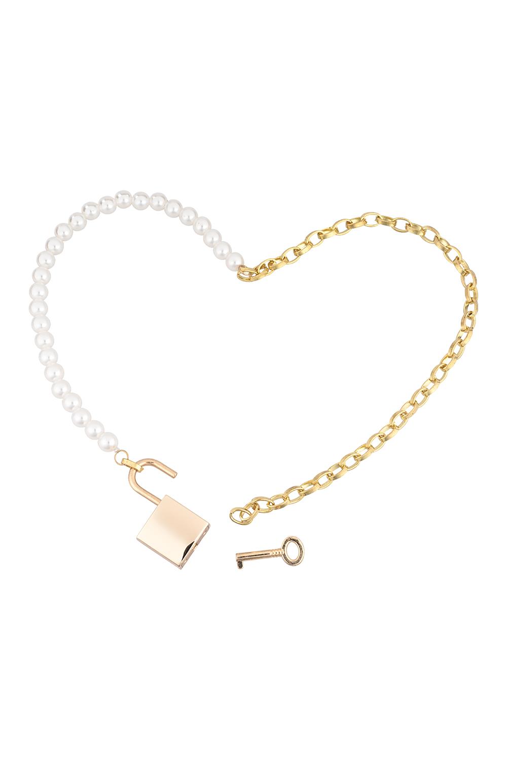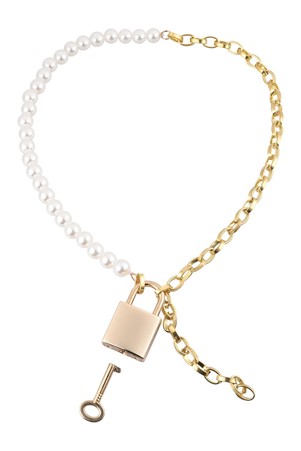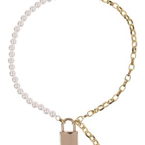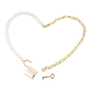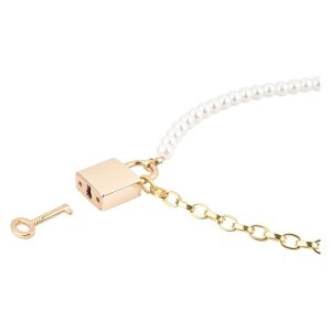 Live in submissive luxury with the Pearl Day Collar. Feel like you’re living the highlife with illustrious faux pearls and gold chain draping your neck all while connected by a mysterious lock and key that shows you belong to your partner. Use discretion by wrapping the pearls around your wrist and locking it to the chain to create a bracelet and extend your submission into everyday wear.Designed for discrete wear with stunning faux pearlsand gold chainCustom gold lock and key keeps collar in placeWear tight or loose with an adjustable length from 9″ to 20″ / 22,8 to 50,8 cmIncludes:One Metal and Faux Pearl Necklace StrandOne Metal LockOne Metal KeyMaterials: 45% ABS, 45% Iron, 10% Zinc alloyThe Sex &
