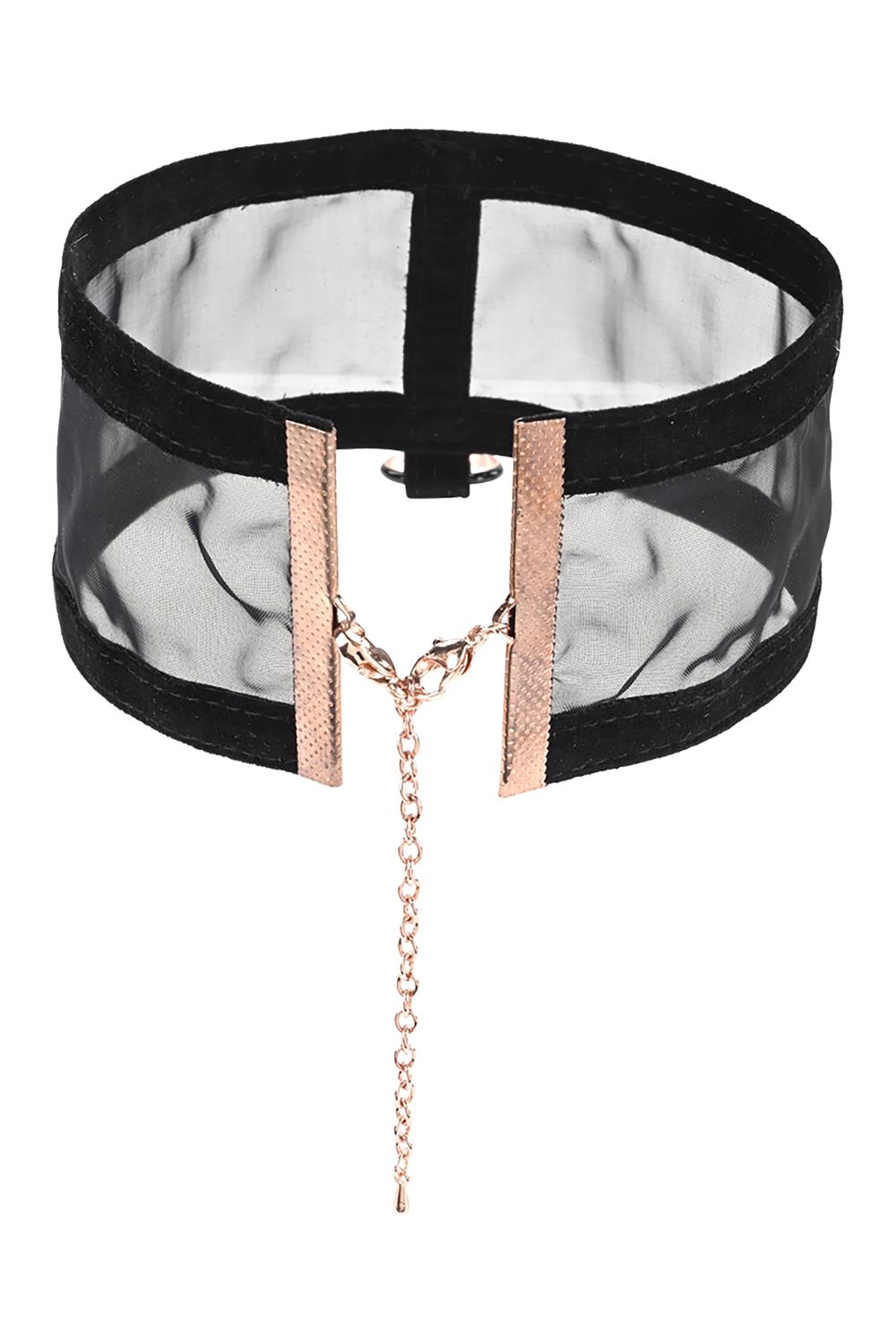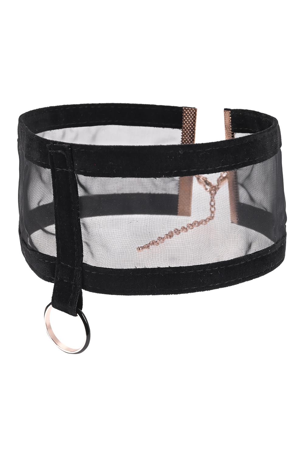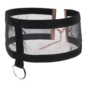 Add a touch of sensuality and allure to your outfit with the Sheer Day Collar! This stunning sheer collar features a black and gold collar ring and is delicately finished off with a luxurious velvet ribbon. The unique combination of materials makes the Sheer Day Collar a one-of-a-kind piece that will elevate any ensemble, in and outside of the bedroom. Indulge in the Sheer Day Collar and experience the ultimate in submission and glamour!Designed for discrete wear with lobster claw closureSmooth sheer mesh allows for comfortable all day wearAdjustable length to fit necks 13½” to 16 ¾” / 34,3 to 42,5 cmIncludes: One Sheer Collarwith Metal RingMaterials: 80% Polyester, 15% Iron, 5% EpoxyThe Sex &