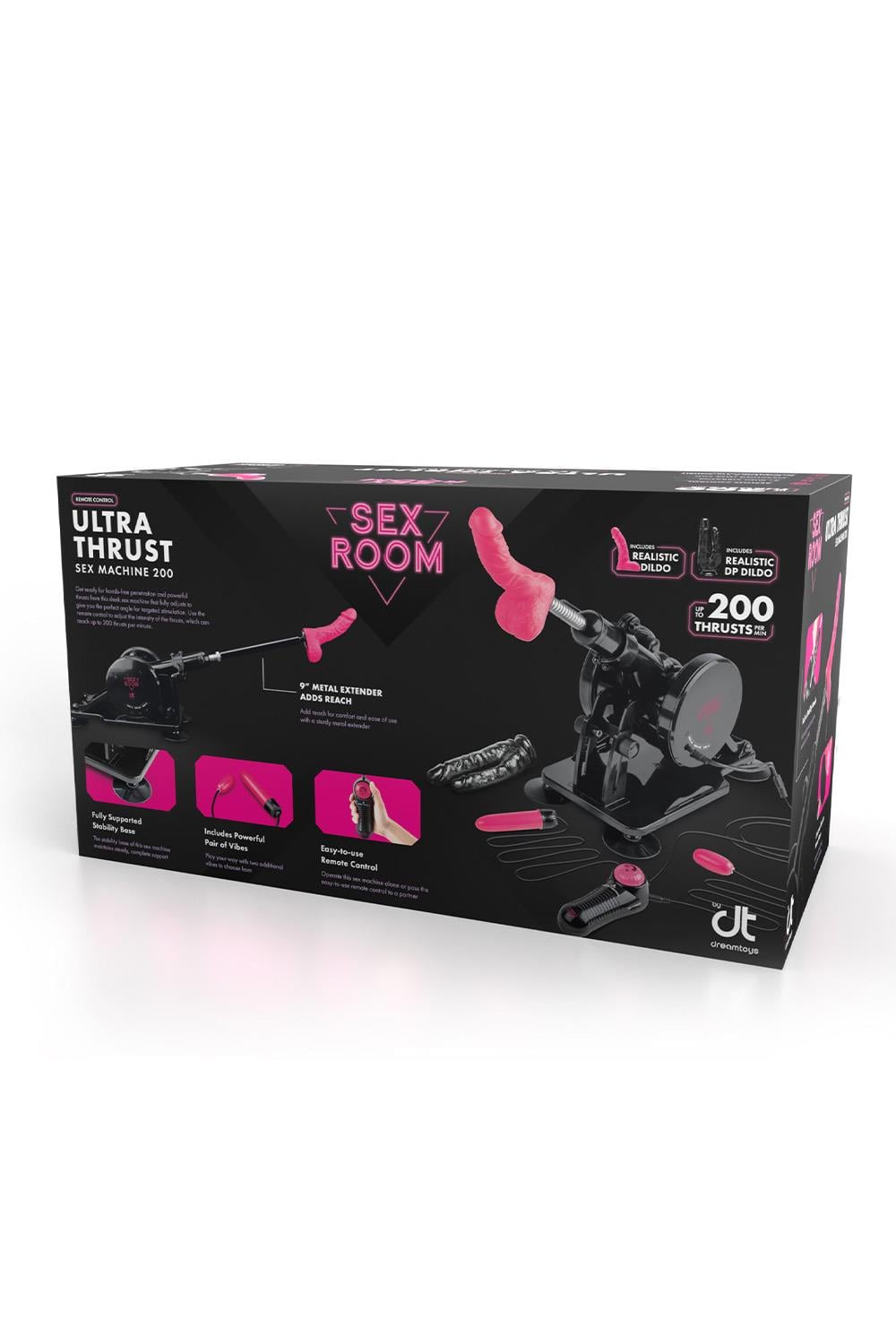 Step inside your own personal sex room where the Ultra Thrust Sex Machine gives you everything that you desire. The deep thrusts from the 6” (15,2 cm) dildo and 9.5″ (24,1 cm) double penetration dildo will satisfy fantasies.Get ready for hands-free penetration and powerful thrusts from this sleek sex machine that fully adjusts to give you the perfect angle for targeted stimulation. Use the remote control to adjust the intensity of the thrusts, which can reach up to 200 thrusts per minute.Ultra Thrust Sex MachineWith remote controlIncludes realistic double penetration dildoUp to 200 thrusts per minuteIncludes:- Ultra Thrust Sex Machine 200- 6” (15,2 cm) Realistic attachment- 9.5″ (24,1 cm) Double Penetration Attachment- Easy to use Remote Control- Vibrating Love Egg- 5″ (12,7 cm) Mini Vibrator
