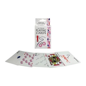 A campy and fun set of playing cards where the suits are cocktail themed. Spades are buttplugs, hearts are vibrators, clubs are whips and diamonds are furry handcuffs. Play all of yourfavorite card games and adult games, like strip poker, with this sex toy suited card deck.Includes: 52 Standard Playing Cards and 2 Jokers.
