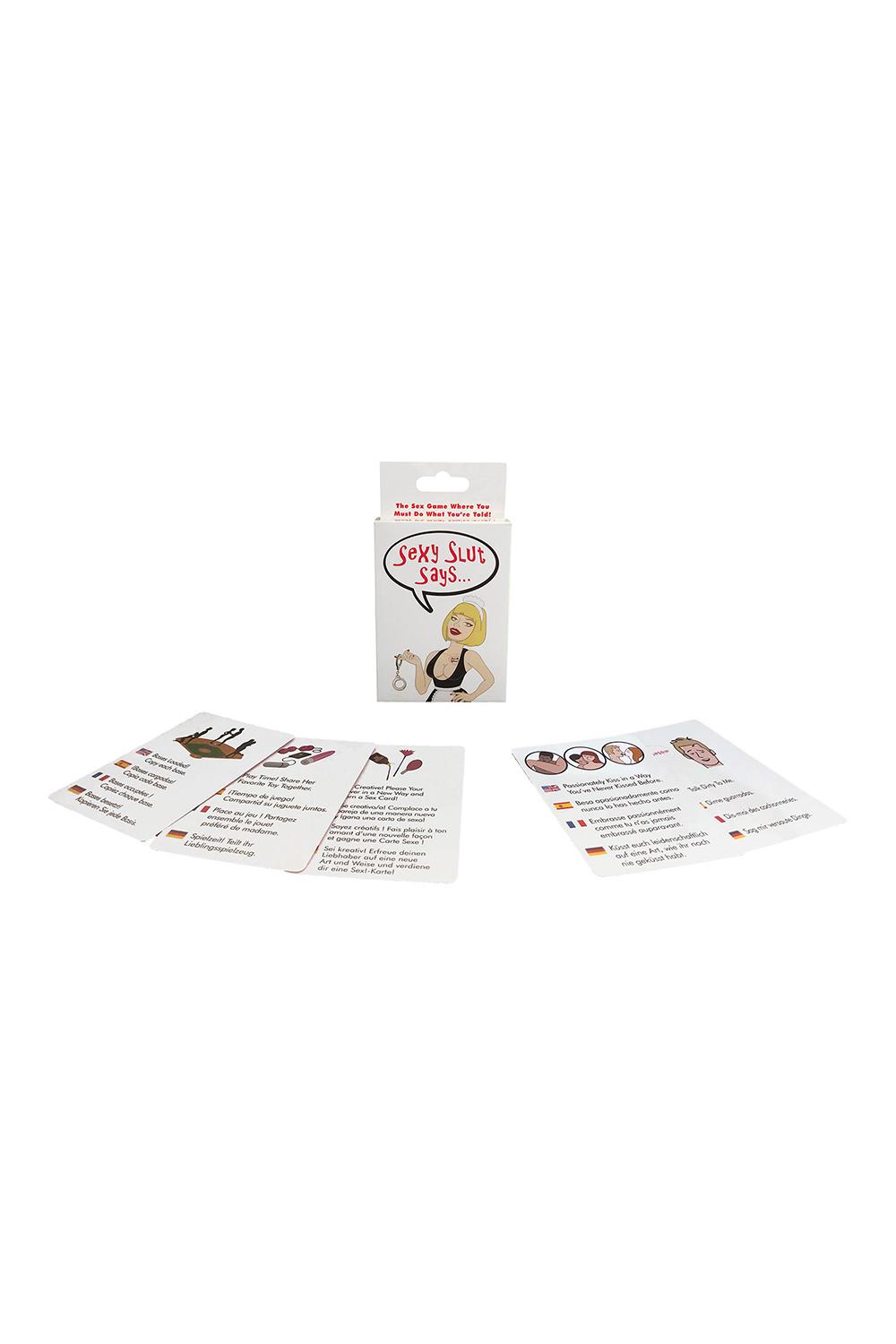 Sexy Slut Says is a year-round version of their highly successful Sexy Santa Says Game.Game play for Sexy Slut Says… is very simple. You separate the Sex! Cards from the Sexy SlutSays… cards. You and your lover take turns selecting and acting out Sexy Slut Says… cards.Some cards result in you earning a Sex! Card, and the first player to earn three Sex! cards wins,and gets to select a sex position on of these cards for the couple to act out.Sample Sexy Slut Says… Cards include “Don’t Thank Me, Just Spank Me.”, “Make an Obscene Gesture, Then Act It Out.”, and “Bases Loaded, Copy Each Base.” Original artwork is included on each card to demonstrate the action. For example, the “Based Loaded” card, shows a couple kissing on first base, fondling each other on second, and oral sex on third.Sample Sex! Cards include “Orgasmic Oral Sex for Her.”, “Full Blown Oral Sex for Him”, and“Easy Entry with Her Legs in a V-Shape”. These cards also include graphics to demonstrate how to do the sex positions.“The biggest compliments we receive about our games and at meetings and trade shows, is about our original and extensive game content.” explains CEO Brian Pellham. “The cards are all different with the exception of the five ‘Be Creative! Please Your Lover in a New Way and Earn a Sex! Card!”. This is similar to all of the other sex card games in our line. We continue to give customers new things to try and that keeps them coming back for more ideas.”Sexy Slut Says…includes 4 languages; English, Spanish, French and German.The sex