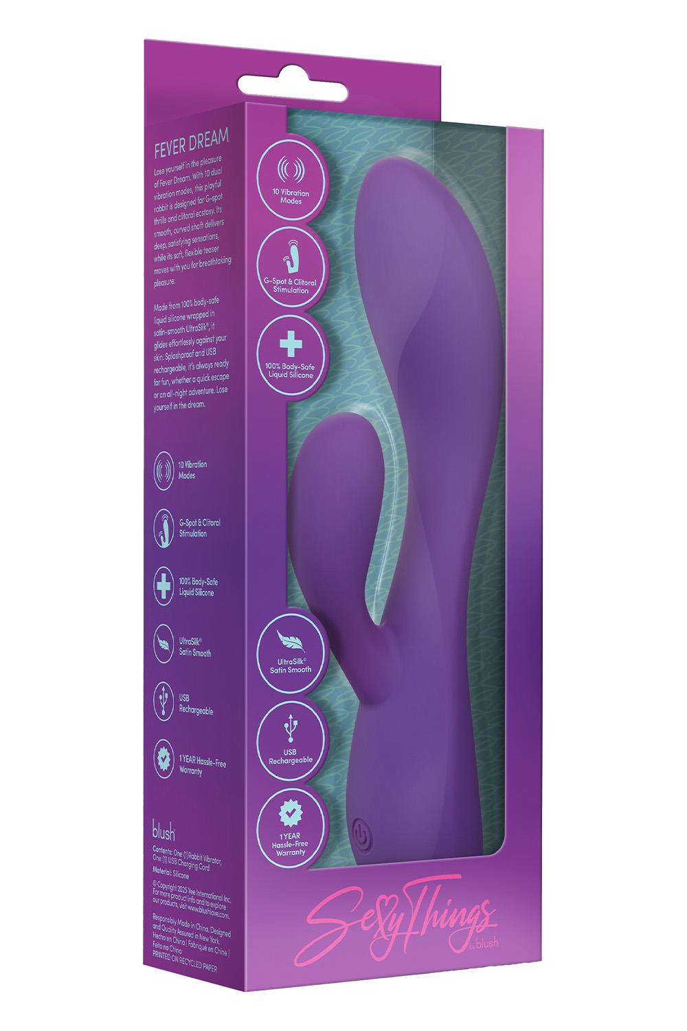 Lose yourself in the pleasure of Fever Dream. With 10 dual vibration modes, this playful rabbit surrounds you with sensation, offering G-spot thrills and clitoral ecstasy that build with every pulse. Its smooth, curved shaft delivers deep, satisfying pleasure, while the soft, flexible teaser moves with your body to heighten each touch and create breathtaking waves of stimulation. Made from 100% body-safe liquid silicone and wrapped in a satin-smooth UltraSilk® finish, Fever Dream glides effortlessly across your skin for a luxurious feel. With splashproof versatility and USB rechargeability, it’s always ready when you are, whether for a quick escape, intimate exploration, or an all-night adventure. Step into the dream and let go.10 Dual Vibration Modes (3 Speeds & 7 Patterns)Smooth, Curved Shaft For G-Spot PleasureFlexible Teaser For Clitoral Stimulation100% Body-Safe Liquid Silicone, UltraSilk® Satin SmoothSplashproof, USB Rechargeable, Easy To CleanLength 7.75 inch / 19,7 cmInsertable Length 4.5 inch / 11,4 cmWidth 1.5 inch / 3,8 cmWeight 6.8 oz. / 192.77 gr