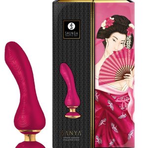 SHUNGA is proud to present its new range of intimate massagers created to meet the needs of EVERY woman. It took several hours spent on the drawing board to design elegant and luxurious toys that meet women’s requirements in terms of ergonomics, vibration, quality and above all the achievement of pleasure. Our innovative, exclusive and refined designs will lead straight to the climax of sexual arousal: female orgasm.For the woman who desires the ultimate refinement, SANYA™ offers softness, comfort and flexibility. Its luxurious and ergonomic design, matched with its power, will satisfy all your desires. The finesse of its vibrations will give you a range of exhilarating sensations, which will lead you to the peak of vaginal or clitoral pleasure. Thrills guaranteed in style!Flexible shaft for optimal stimulationErgonomic handle offering maximum controlEasy to manipulate for everybody typeErgonomic design that adjusts to the bodyFlexible tipMade of hypoallergenic siliconePowerful high performance motor with 5 intensity levels10 Vibration functions with synchronized lightingQuiet and discreet100% waterproof (IPX7)USB rechargeableCharging indicatorLock function for transportLength 18,5 cmInsertable length 11,5 cmDiameter 3,8 cmIncludedIntimate massagerUSB Charging cable (AC adapter not included)Satin pouchQuick user guideSale Tip:For enhanced vaginal orgasms, be sure to sell SANYA™with Shunga Toko Aqua lubricant and Rain Of Love cream. It can also be used with Secret Garden gel for exhilarating clitoral pleasure. The unique texture of the shaft offers soft sensations for heightened orgasms.