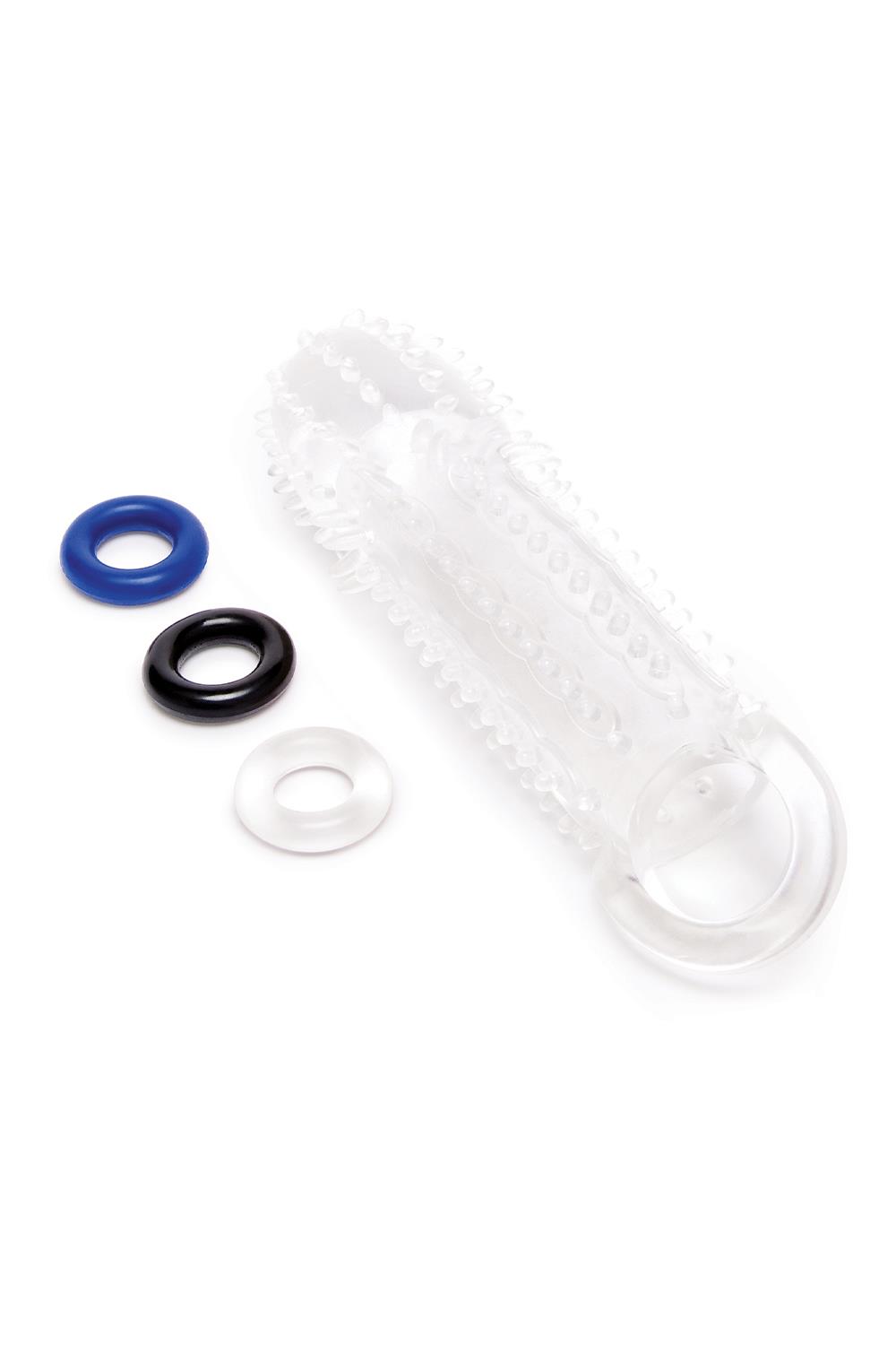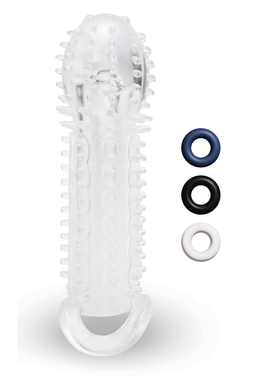 SIZE UP CLEAR VIEW TEXTURED PENIS EXTENDER WITH BALL LOOP