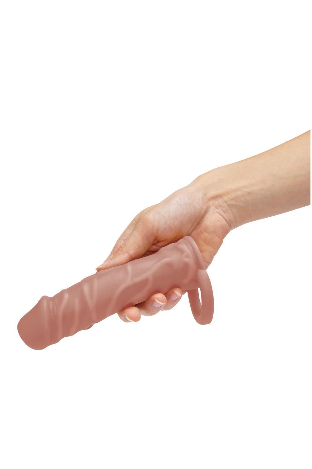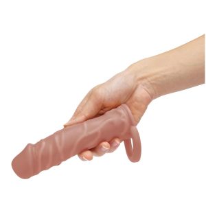 The 1” realistic extender features a veiny, curved shaft for powerful stimulation and helps to add extra length and girth for your penis. The flexible design helps you to achieve maximum pleasure during penetration thanks to the thick, curved shaft, and the ball loop helps secure the extender in place. Use the three included rings to increase your stamina and enhance your pleasure.Realistic and textured bodyBall loop for extra security1” head for extra deep penetrationFlexible material for maximum tractionWaterproofMade from body-safe siliconeLength: 5.98 inch / 15,2 cmWidth: 2.91 inch / 7,4 cmHeight: 2.91 inch / 7,4 cmWeight: 0.23 lbs / 104 grIncluded:Penis Extender3 Stretchy Stamina Rings