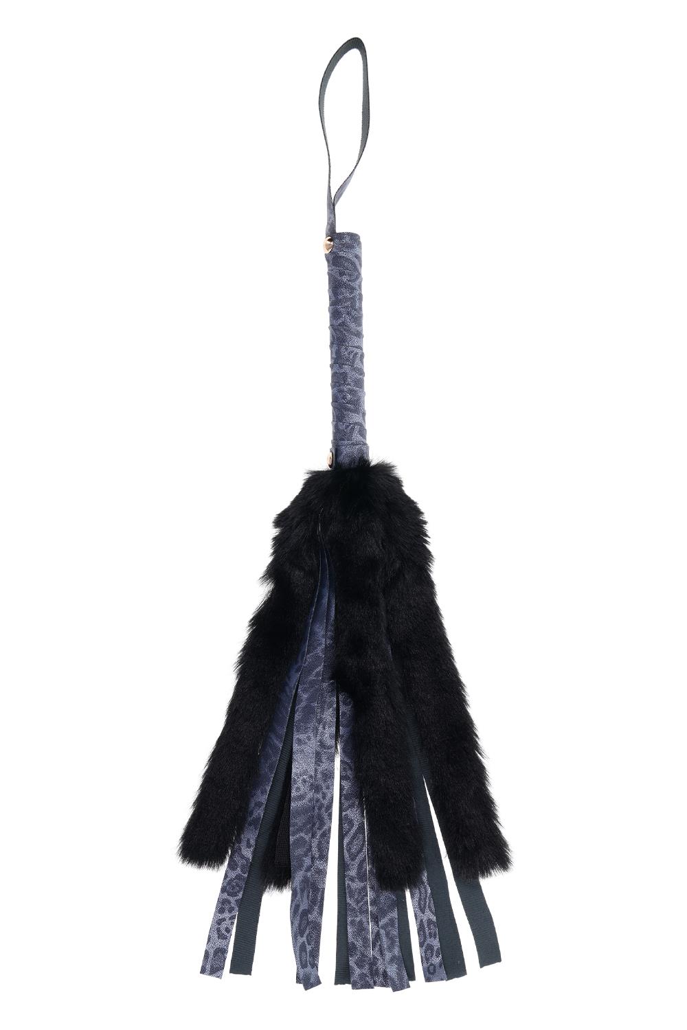 Whip up some excitement with the Cougar Faux Fur Flogger. Featuring luxurious royal blue faux fur falls and a stylish handle, this flogger is perfect for playful and sensual exploration. The gold accents add a touch of elegance, ensuring your wild adventures are as glamorous as they are thrilling. Captivating faux leather wrapped handle with faux leather fallsExceptionally soft black faux fur falls13” / 33 cm faux leather falls and 10.75” / 27,3 cm faux fur falls Colour: navyMaterials: 50% polyurethane, 35% polyester, 10% ABS, 5% iron