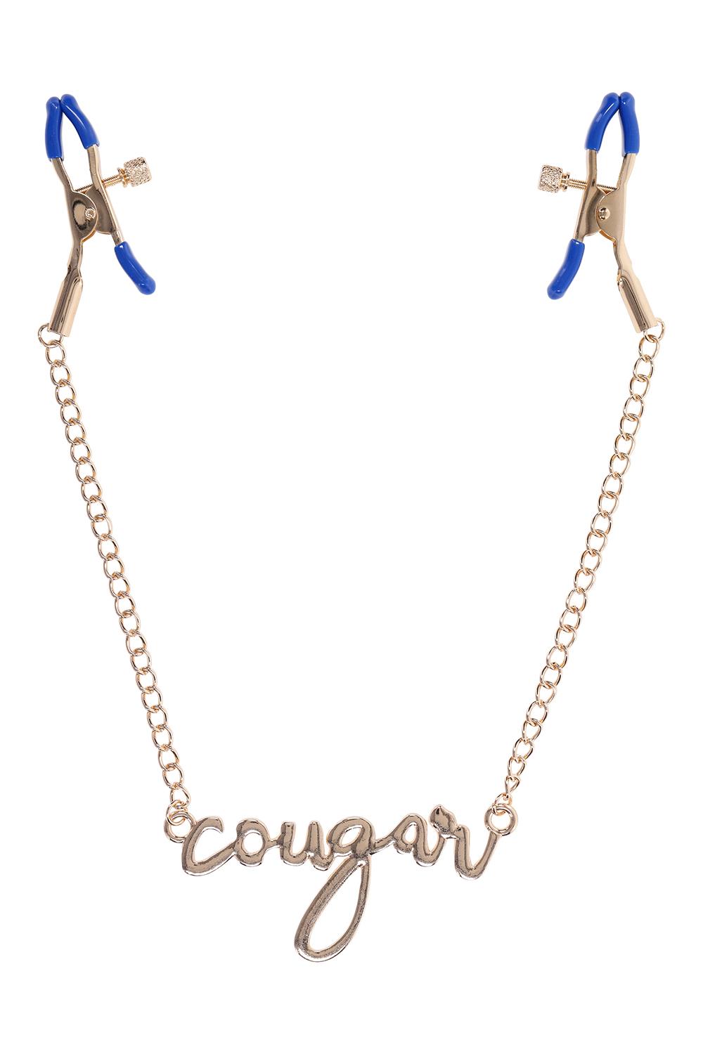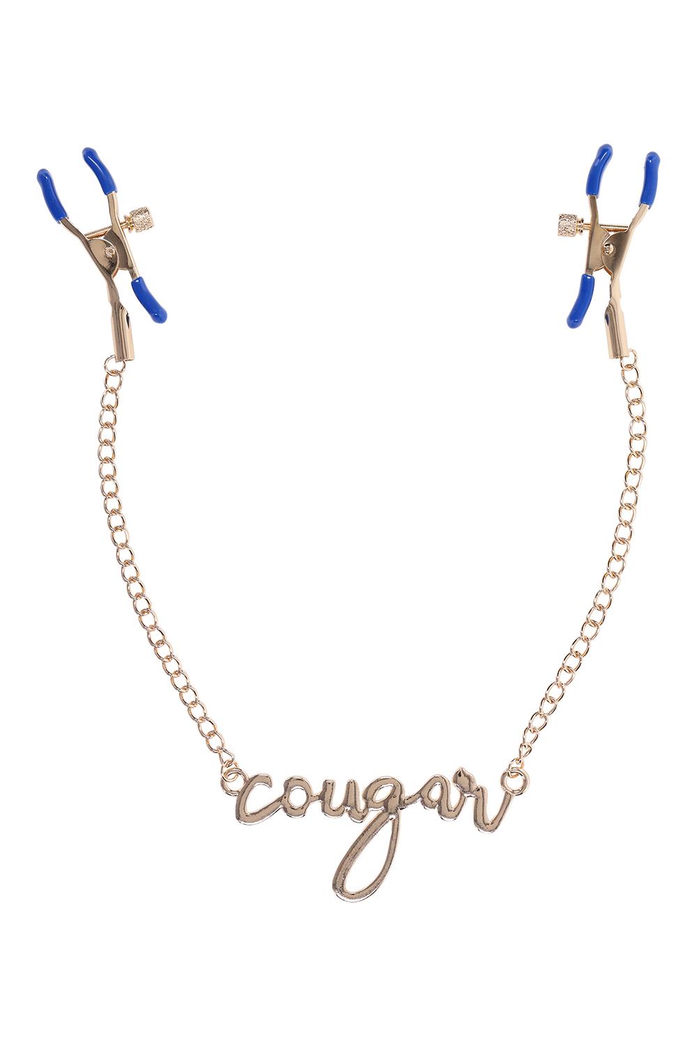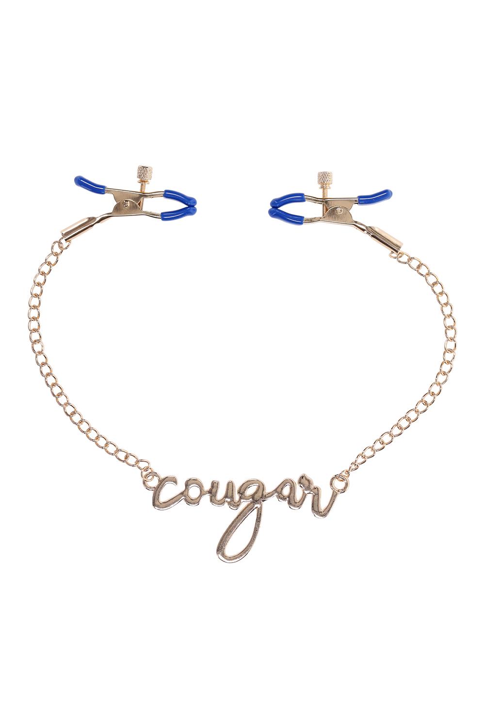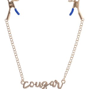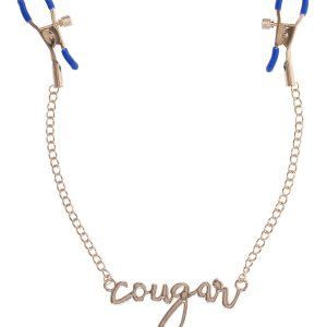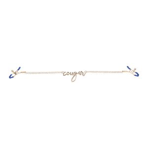 Dare to bare it all and add a touch of thrill to your play with the Cougar Nipple Clamps. These elegant clamps feature a luxurious gold chain with the word „Cougar” written in cursive between them, embodying both style and playfulness. Featuring adjustable tension, these clamps are perfect for exploring new sensations. The sultry blue hue adds a fierce edge, ensuring every moment is as stylish as it is stimulating. Dual sided adjustable tension rubber tipped nipple clampsEnticing cursive lettering spelling „cougar”Length 16.5” / 41,9 cmColours: gold, blueMaterials: 60% zinc alloy, 35% iron, 5% phthalate free PVC