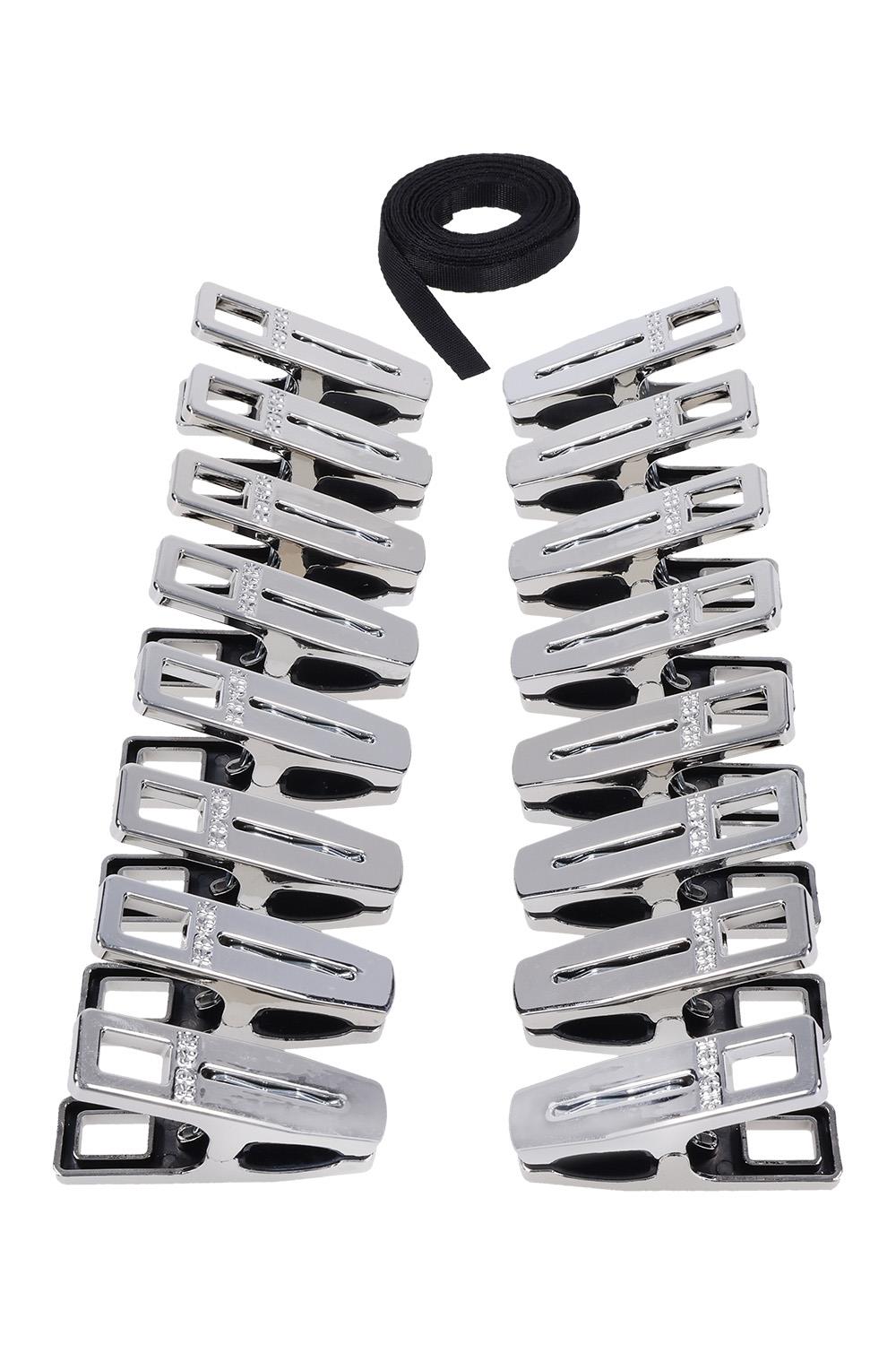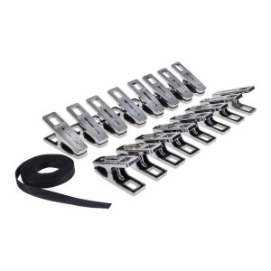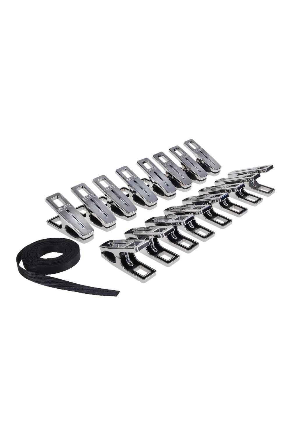silver clothes pins with silicone-lined grips for a secure biteIncludes 96” (244 cm) flat cord for custom tension and creative